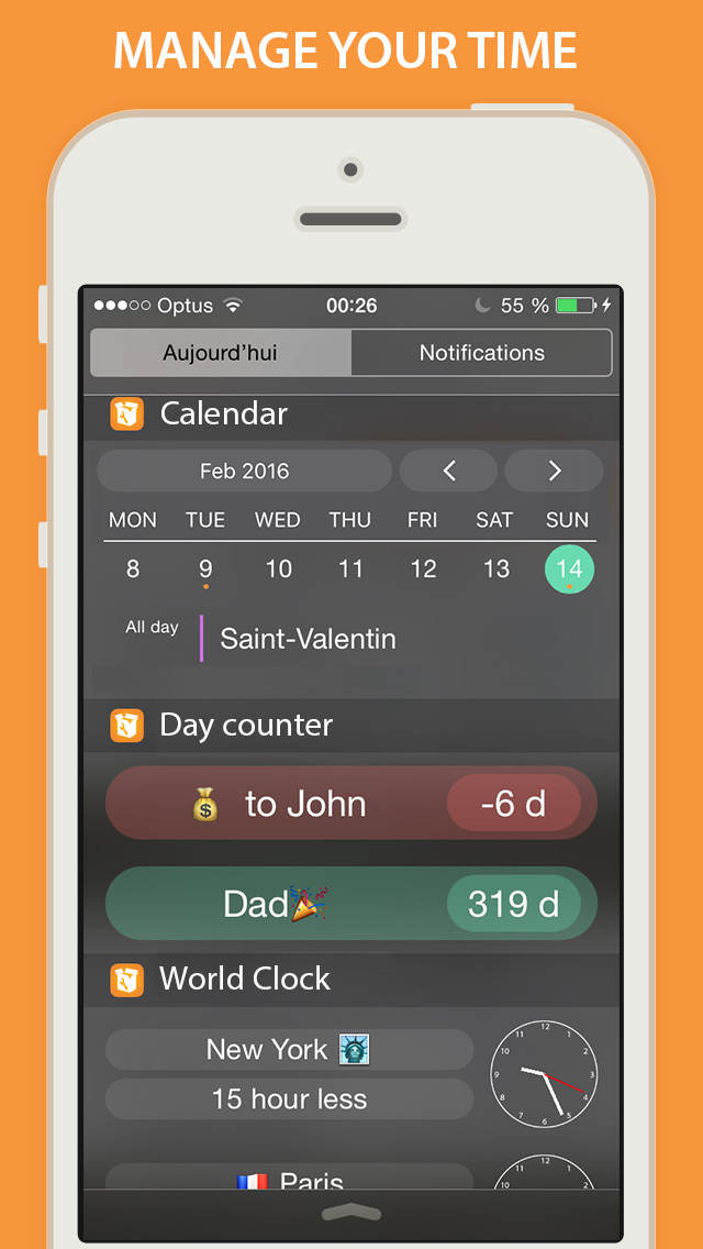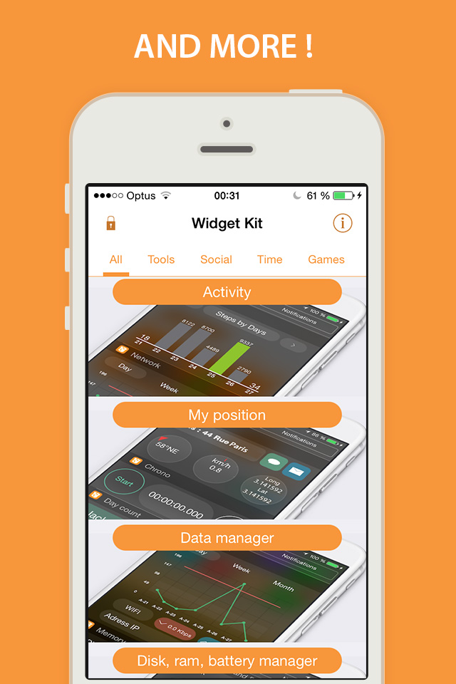 Widget Kit was designed to simplify your life. Discover 18 widgets, grouped in three main themes, all customizable in the application.