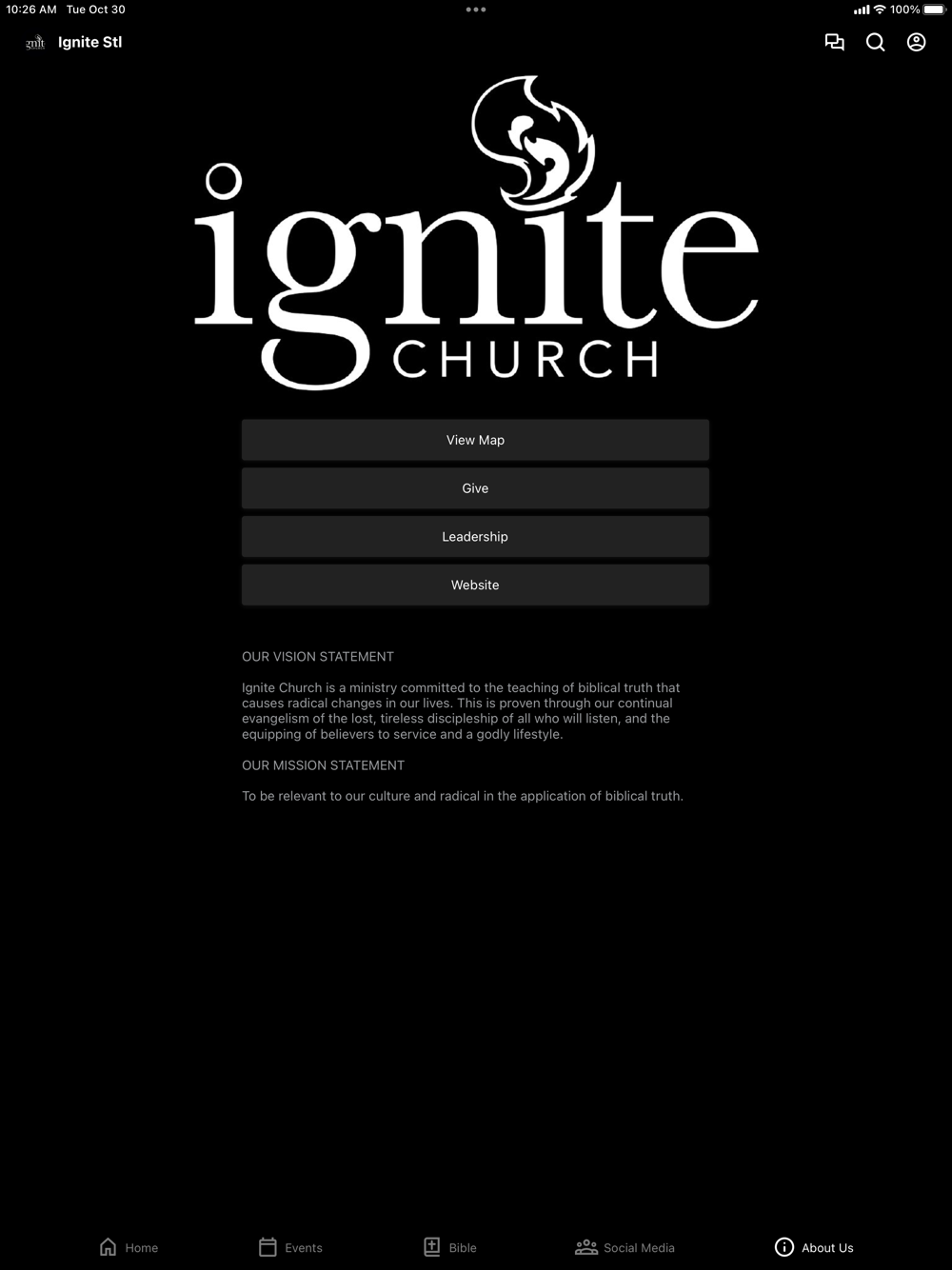 Ignite Church is a ministry committed to the teaching of biblical truth that causes radical changes in our lives. This is proven through our continual evangelism of the lost, tireless discipleship of all who will listen, and the equipping of believers to service and a godly lifestyle.
