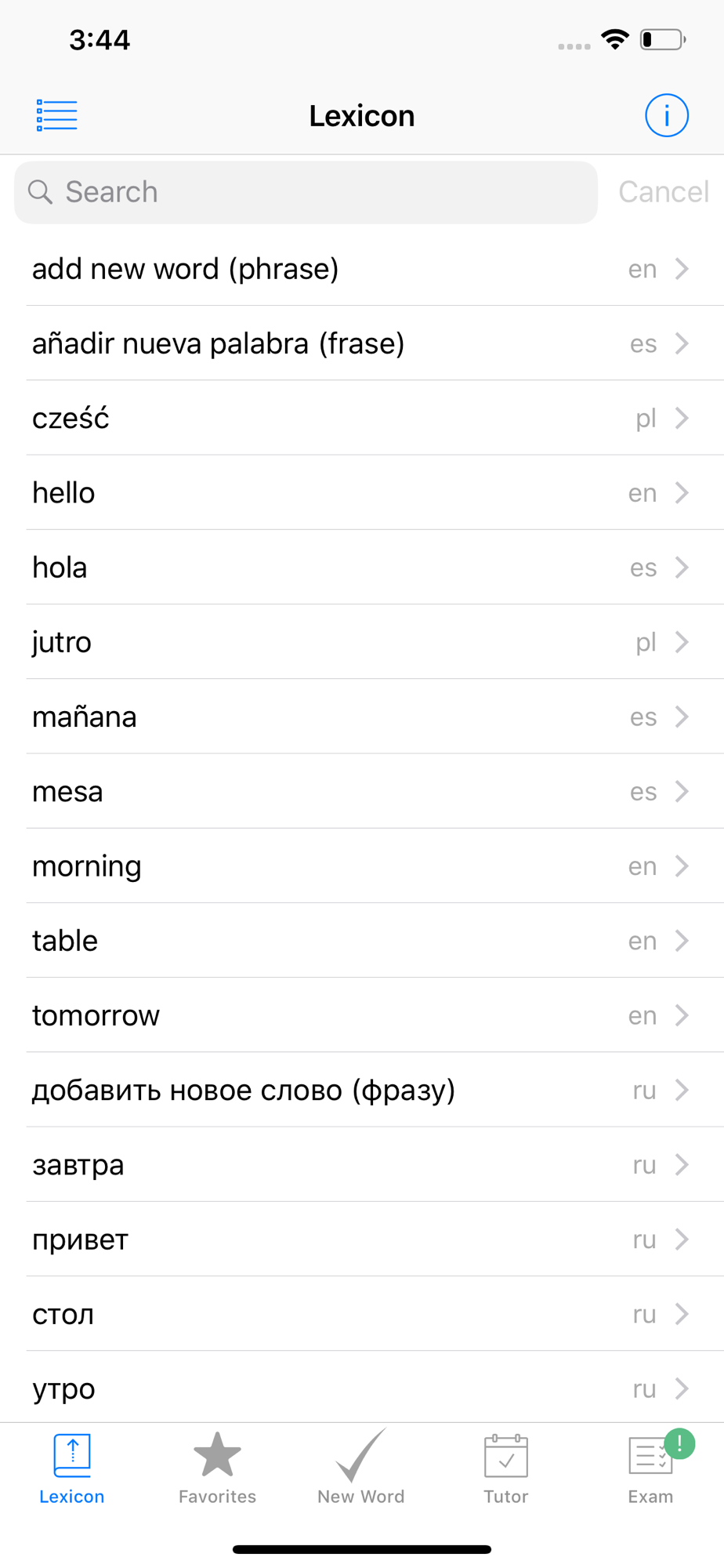 Universal Lexicon is your own word box where you can collect and study new interesting words in any languages.