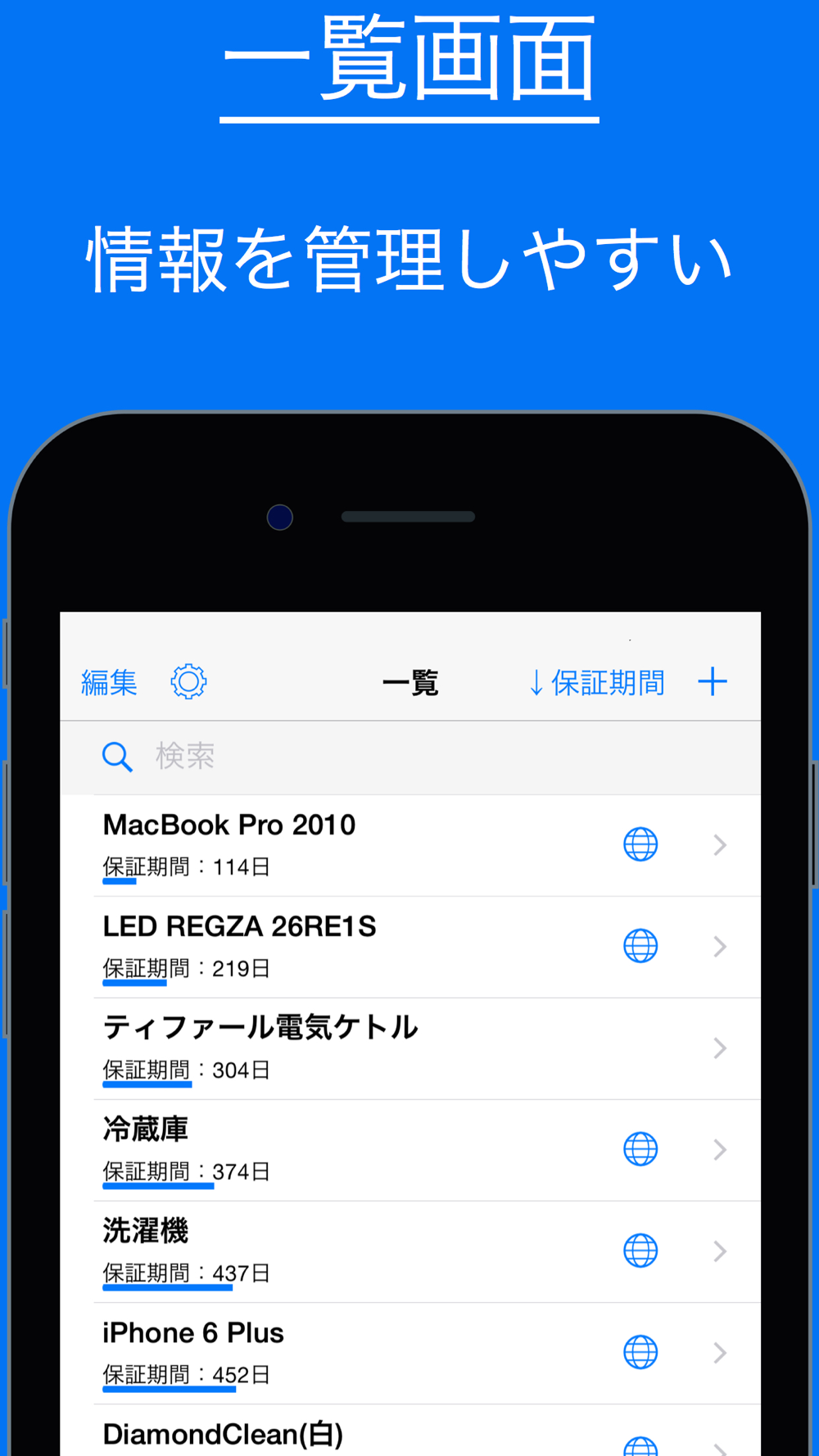 忘れがちな購入情報を一元管理できます。