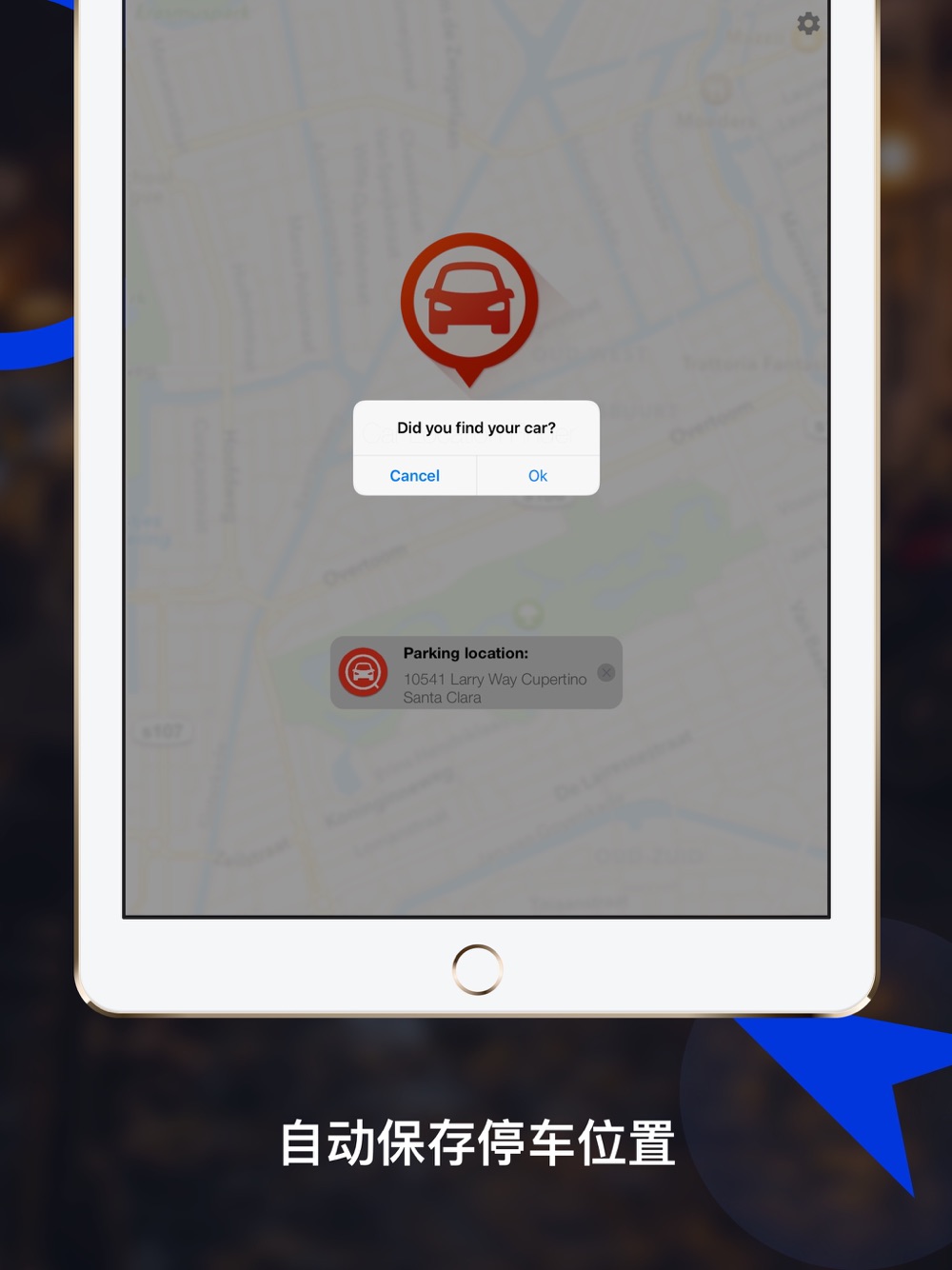 当汽车停止时,停车位自动保存,无需启动应用程序。