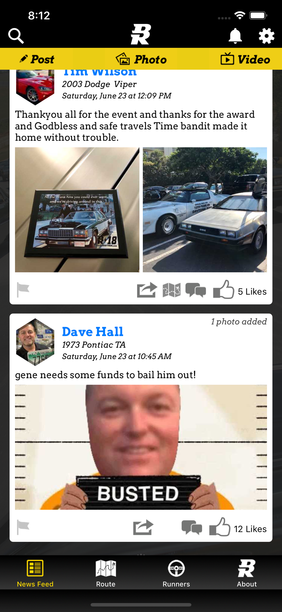 The Bandit Run app allows registered participants of the Bandit Run road rally to post comments, photos and video to to the app that other Runners can follow and to share those posts to their favorite social networks.