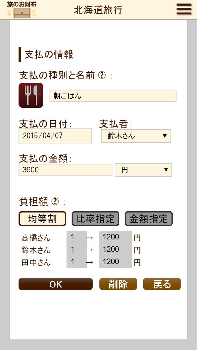 グループ旅行での割り勘や立て替えの会計を保存・管理できるアプリです。