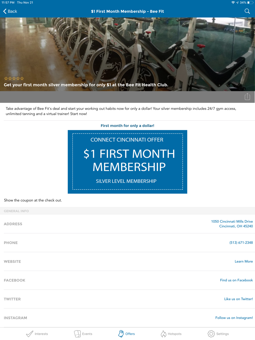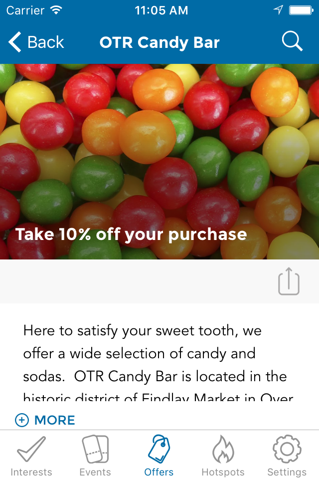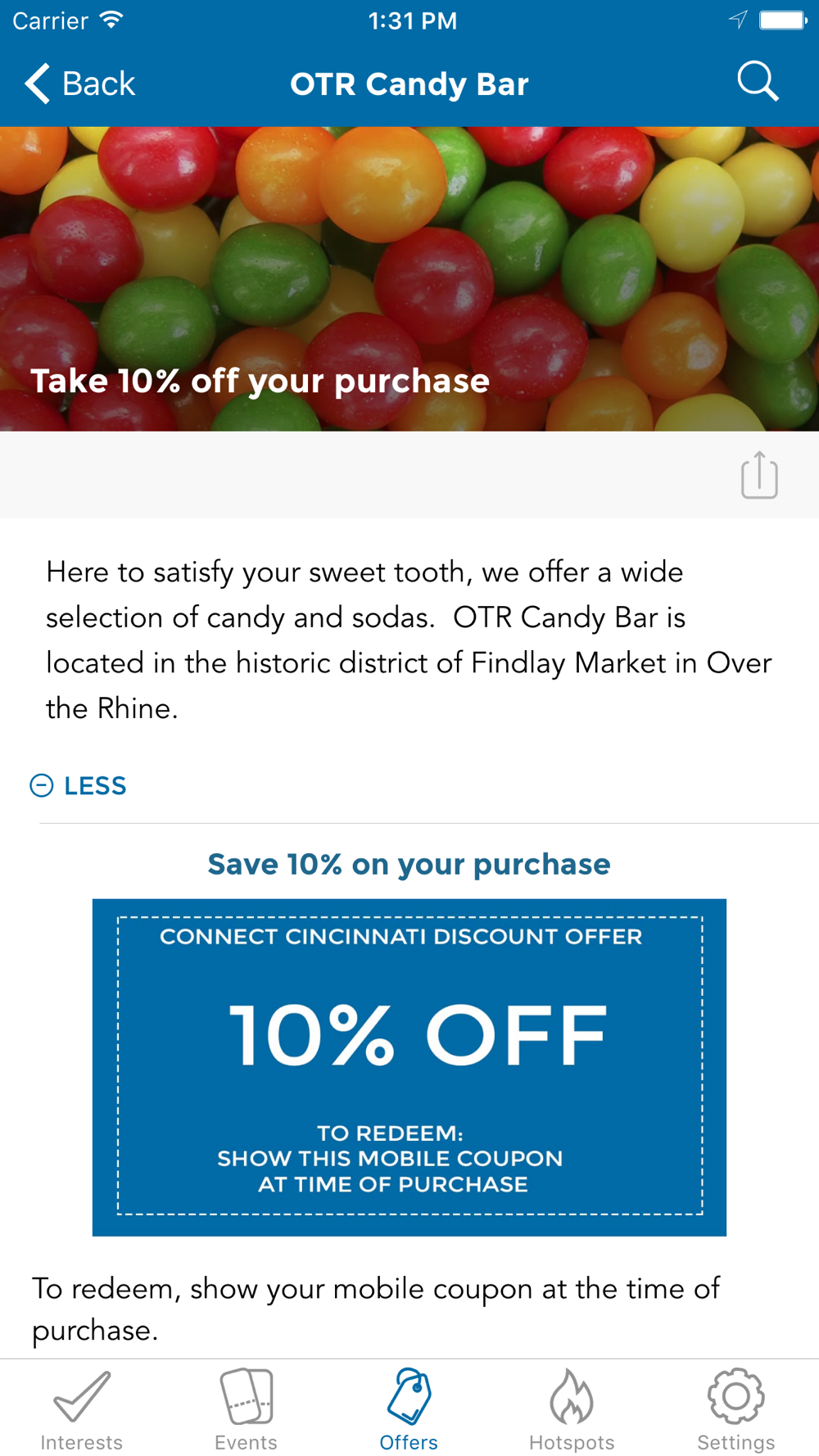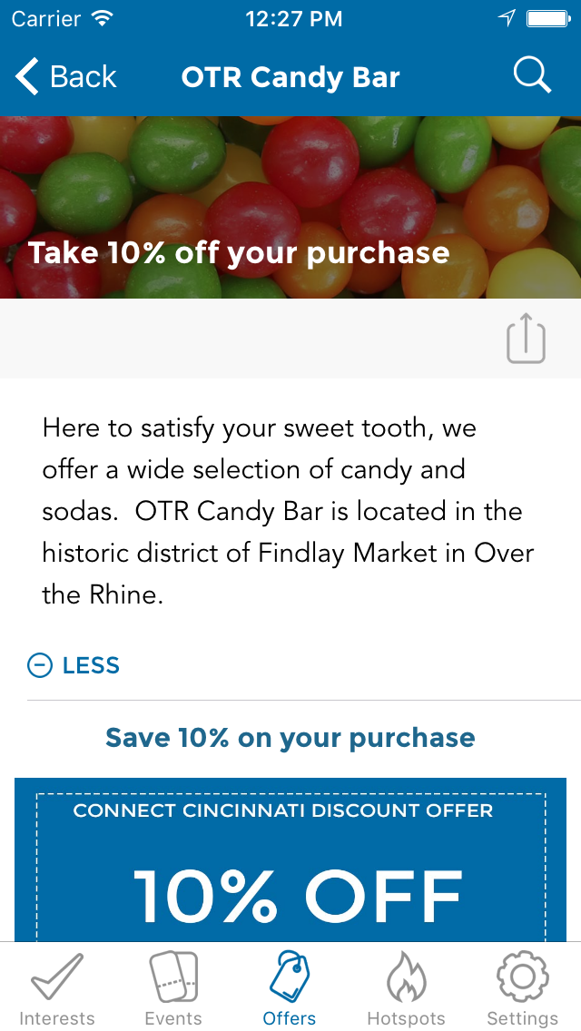 • Deals: Take advantage of discounts to local restaurants, shops, sporting events, concerts, and other local attractions on the spot.