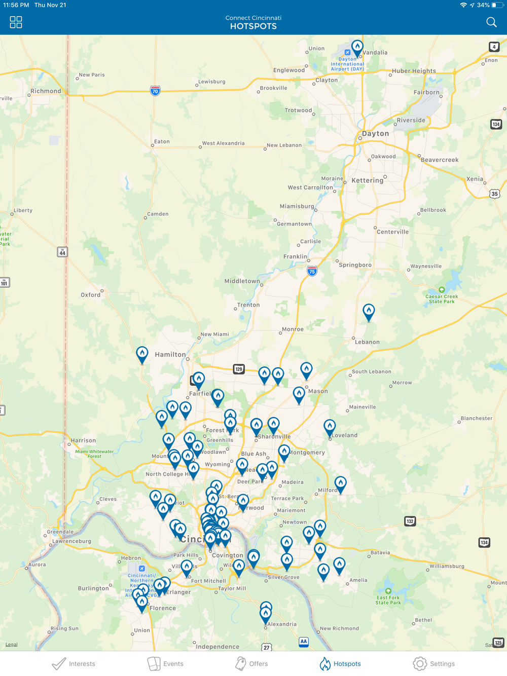 • Fioptics Free WiFi : Search the Connect Cincinnati HotSpot map to access lightning-fast Fioptics Free WiFi at major venues and businesses around town.