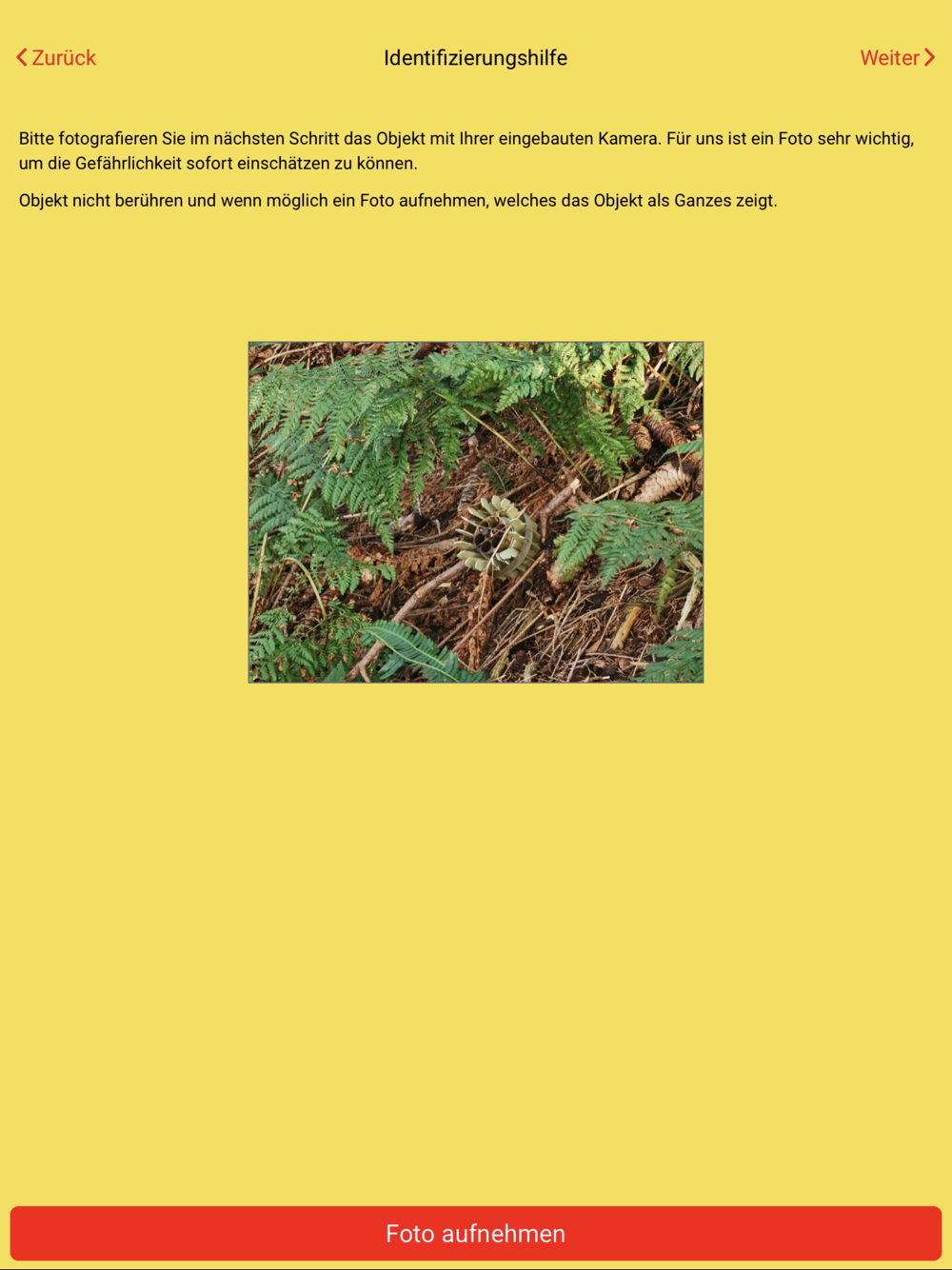 Sind Sie beim Wandern oder Biken schon einmal auf Munitionsreste gestossen und wussten nicht was tun? Ob verdächtiger Fund im Gelände oder Souvenir aus der Dienstzeit im Keller: Melden Sie Ihren Fund der nationalen Blindgängermeldezentrale (BMZ) der Schweizer Armee ganz einfach per App. In der App erfahren Sie, wie man Blindgänger wirkungsvoll markiert, Sie können das gefundene Objekt fotografieren und mit Munitionsbildern vergleichen; die Koordinaten des Fundortes bestimmen und uns die Meldung unkompliziert via App zusenden – ein Muss für Outdoorfans und alle, die für den Fall eines Munitionsfundes gerüstet sein wollen.