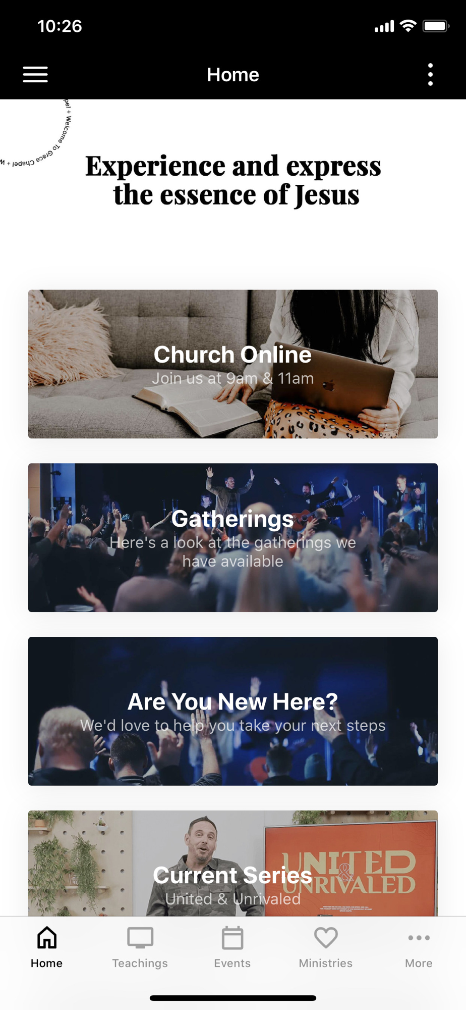 Welcome to the official Grace Chapel App. The latest news, teachings, stories of inspiration, and much more will all be instantly delivered right to your mobile device.