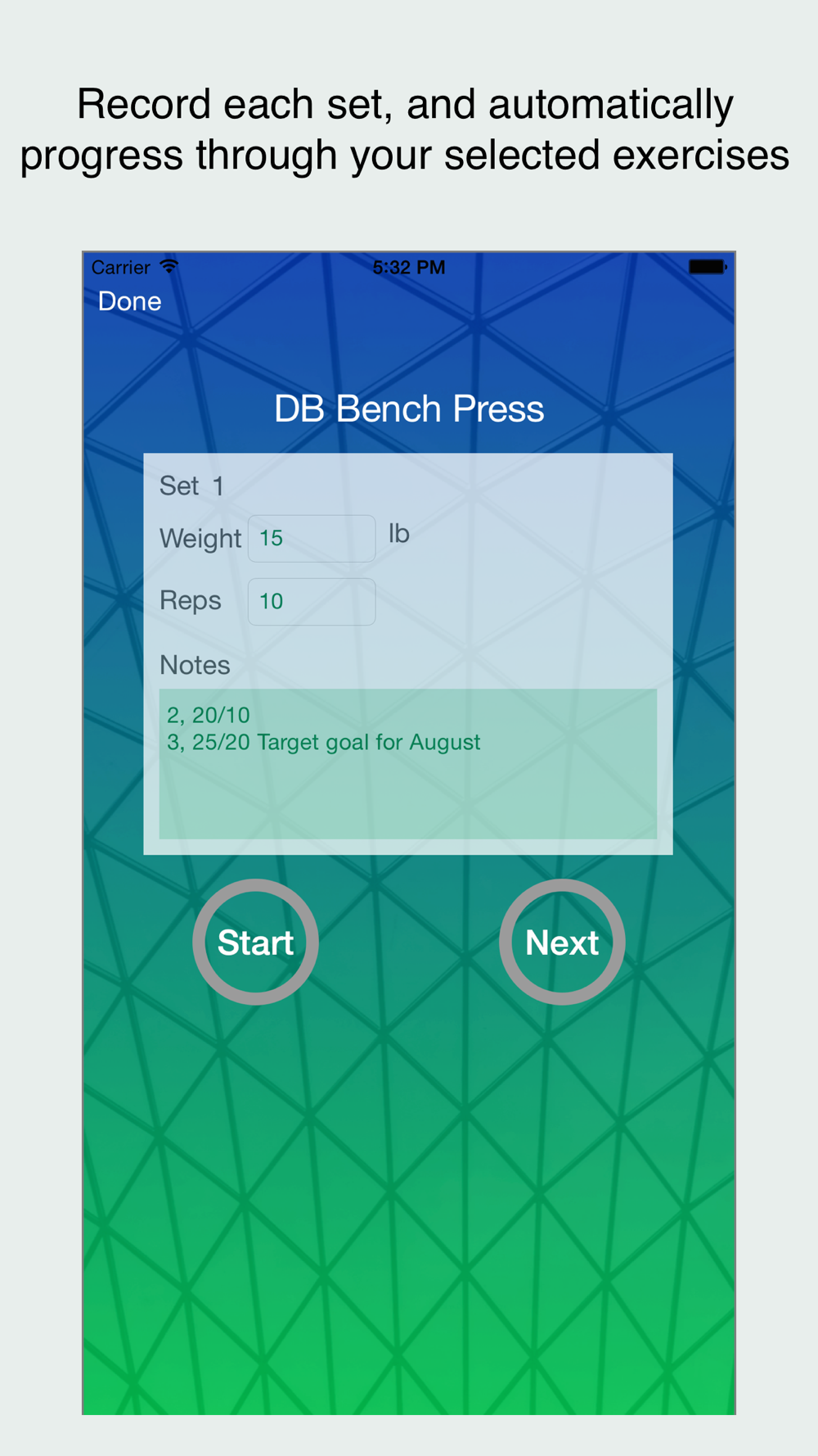 + Exercises and logs are saved directly to your iPhone for speed and