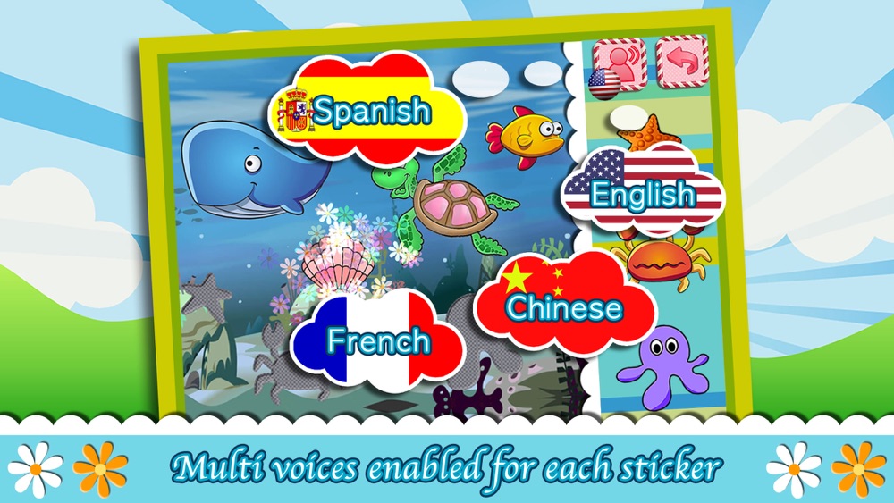 • Your kids can learn English, Spanish, French and Chinese by playing this game.