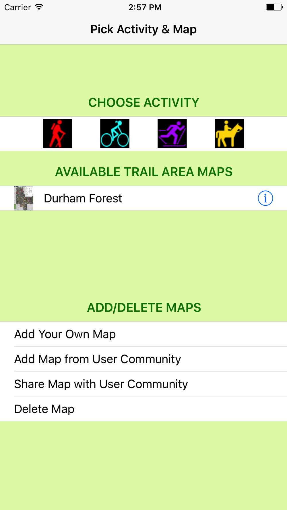 TrailTracker comes with one map pre-installed as a demo to show you how it works so go ahead add some maps in your area or install some from other places and get out and enjoy the trails.