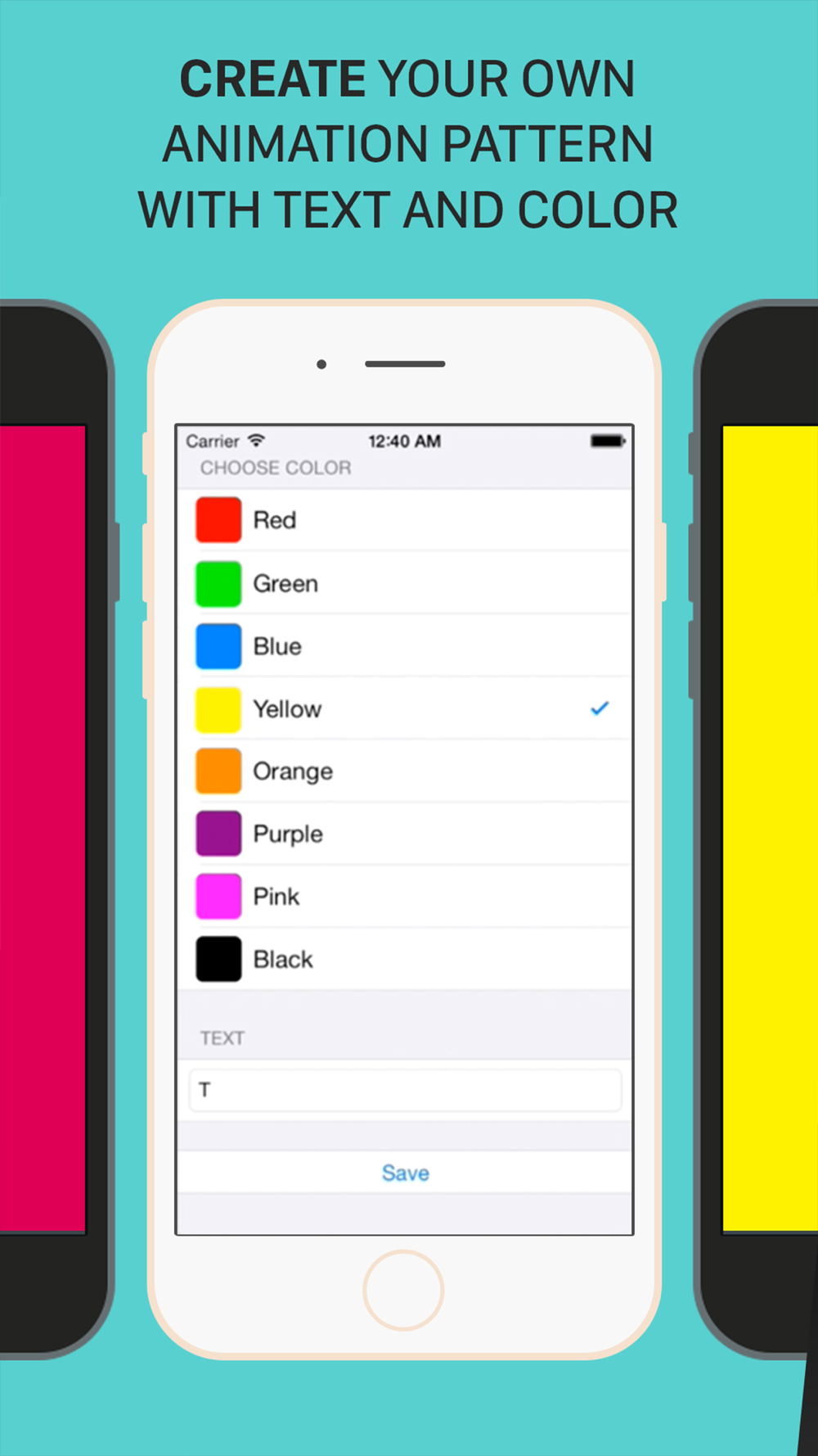 You can also create your own individual light program. Choose your color, transition and text for your unique animation.