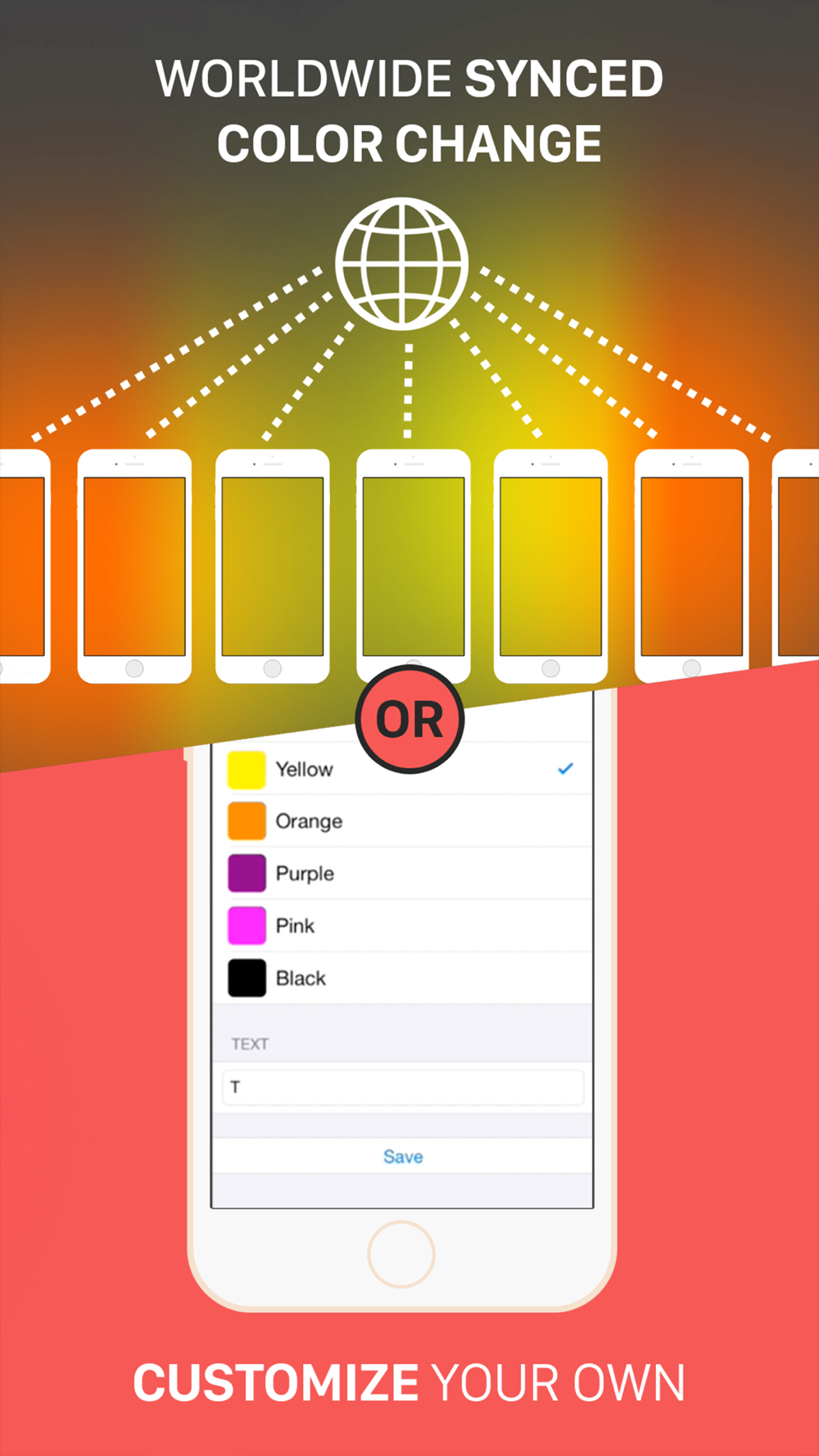 Due to global synchronization, every device receives the same color at the same time. Put your hands up and see how you and your friends illuminate the party.
