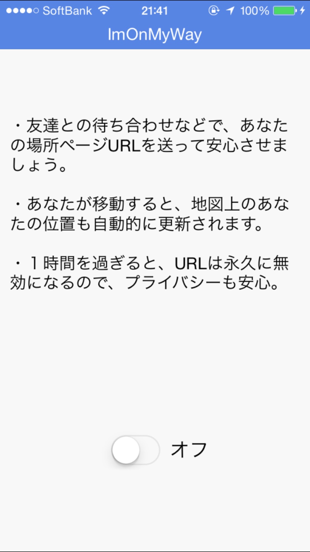 ・このアプリでは、待ち合わせに便利な、あなたの移動中の場所が1時間限定でみられるページを作ることができます。