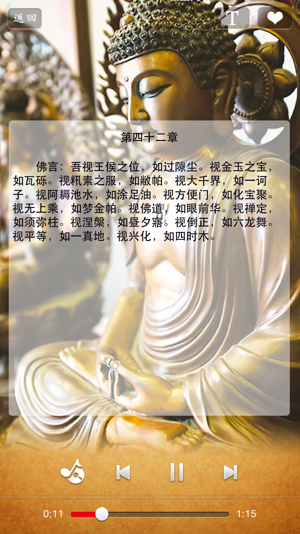 据历史记载,《佛说四十二章经》是从印度传到中国来的第一部重要经典著作。迦叶摩腾、竺法兰把佛所说的某一段话称为一章,共选集了四十二段话,编集成了这部《佛说四十二章经》。又绘画释迦牟尼佛像供养,由是东土佛法僧三宝具足,是为佛教传入中国之始。《佛说四十二章经》集结了佛陀关于持戒、忍辱、断欲、精进、观空等事的四十二段语录。通篇言简义丰,明了易懂,通摄大小乘一切教义,涵诸法要。这部经典反复强调了持戒的重要性,告诉佛教弟子应该如何修行。祖师大德将此经和《佛遗教经》、《八大人觉经》合称之为《佛遗教三经》。