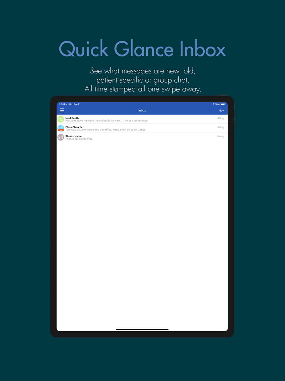 MD Message™ seamlessly syncs across all of your devices and can be used on desktops, tablets and phone alike. You can send an unlimited amount of messages, photos, and audio notes.