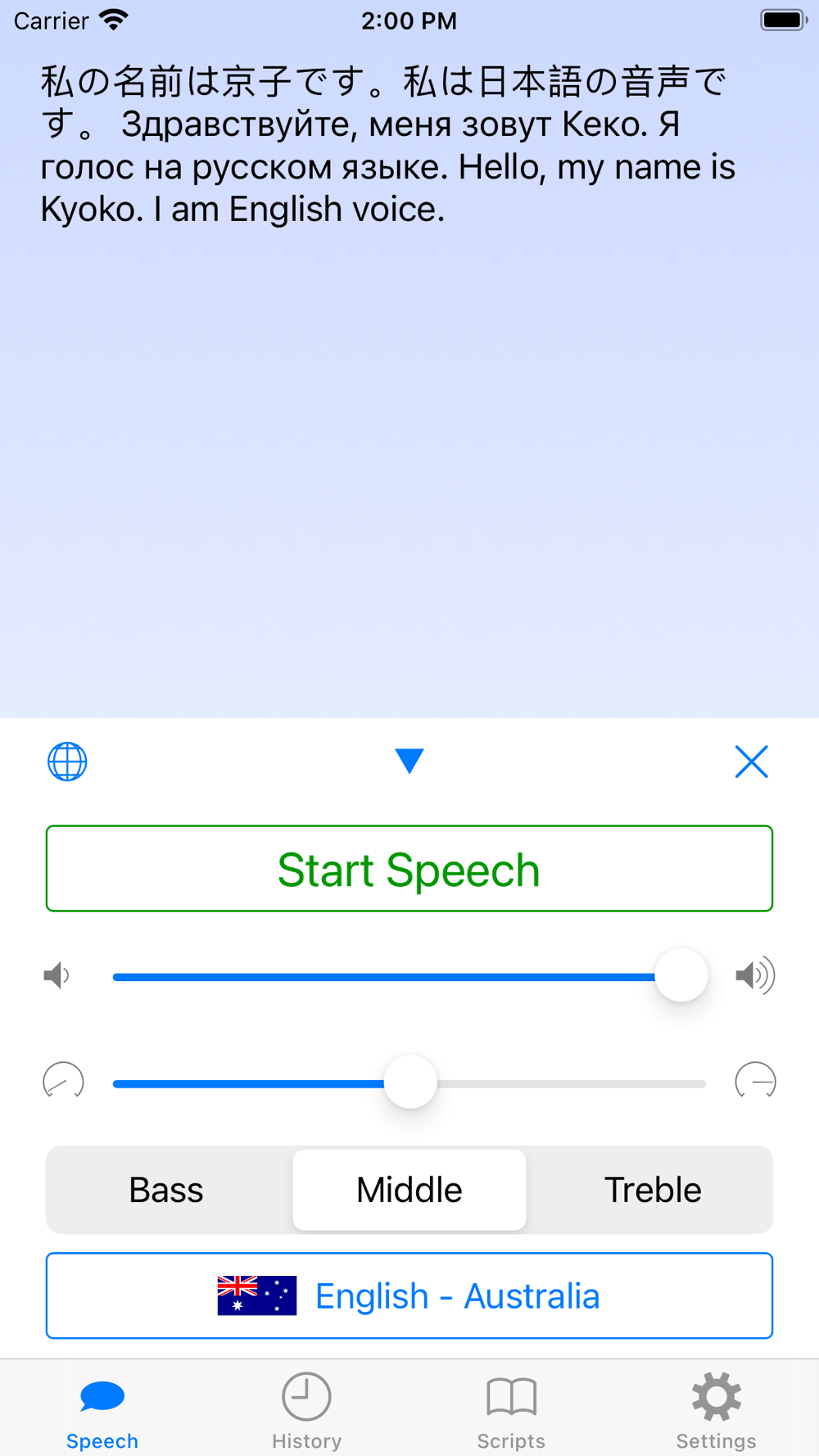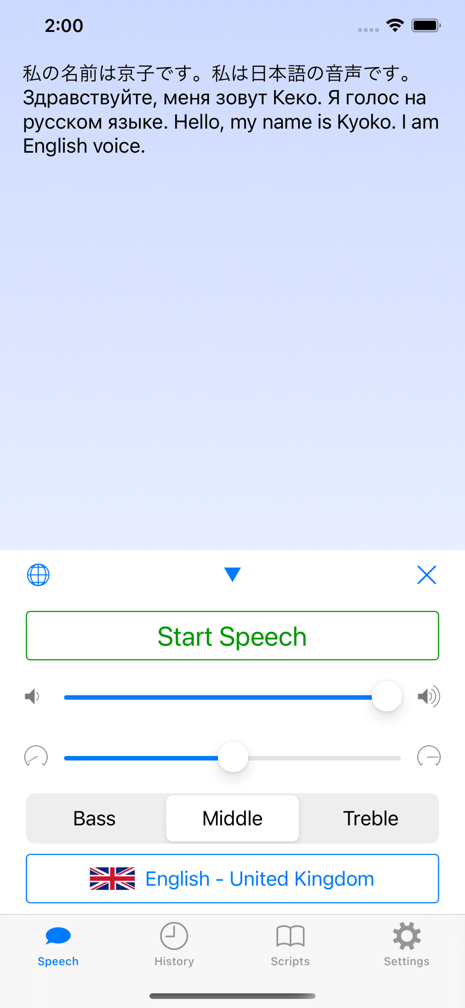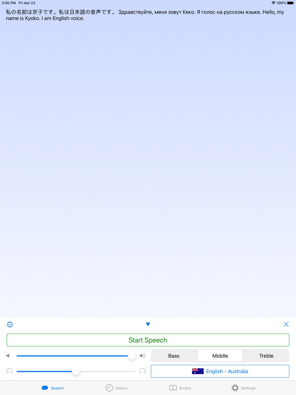 This app acts as a spokesperson for you. The app will read an input text in multilingual or in monolingual. If you want to check how to read sentences and words in an optional language, the app is most suitable. The app uses the speech synthesizer in iOS default, therefore it is not required a network connection.