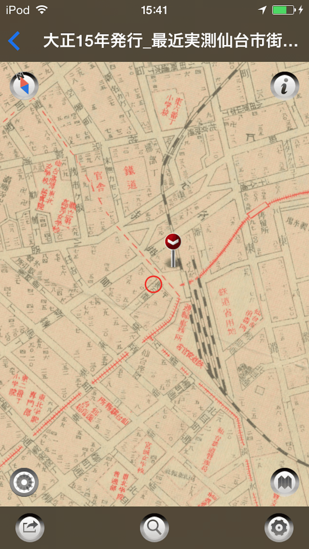 「仙台時間地図」は3つの時代の古地図を現在の地図や自分の位置情報に重ね合わせる事ができるアプリです。