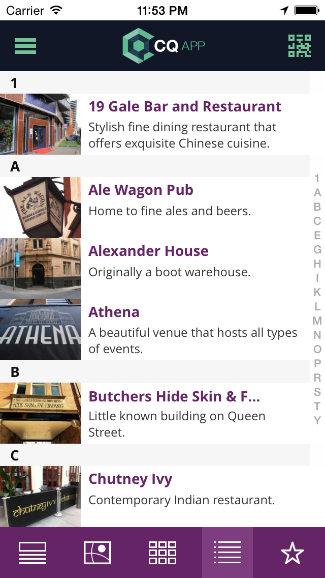 The focus of this first release of the CQApp has been to map places in and around the Cultural Quarter. You will find all the major attractions listed here, as well as plenty of 'hidden gems'.