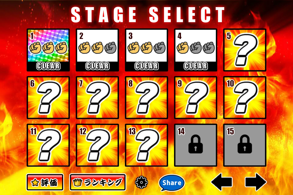 ステージはクリアステージ+数ステージ先までチャレンジできるよ。
