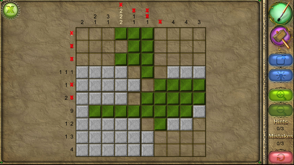 An old Japanese logic puzzle takes on a new look with FlipPix Art! Touch tiles to paint them or break them to form colorful components of paintings. The goal is to use logic to determine which tiles should be filled to reveal a hidden picture.