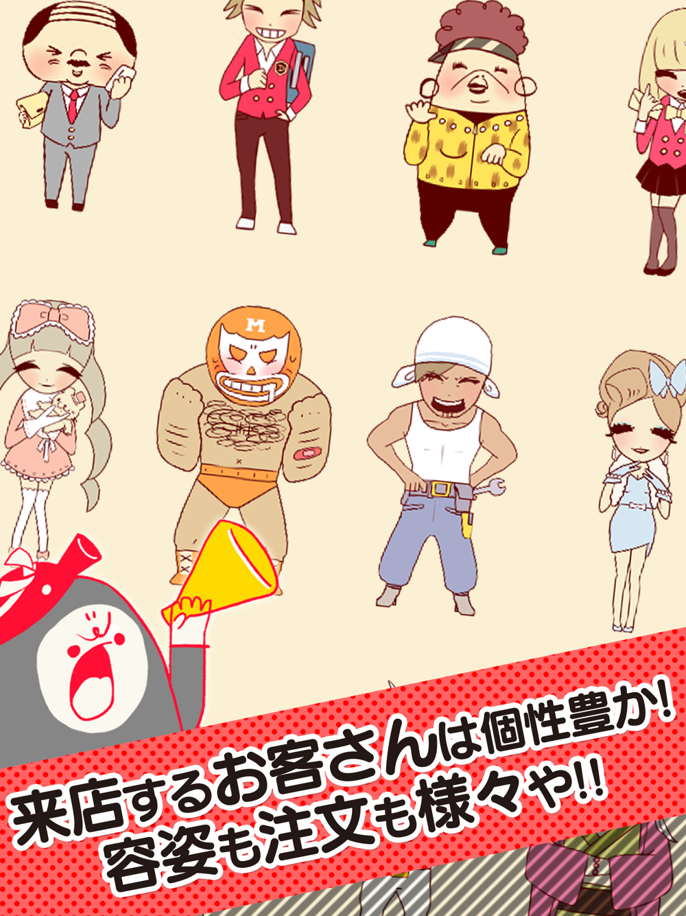 This mode makes the takoyaki according to the order of the guest. A fashionable reward picture can be obtained by satisfying the guest.