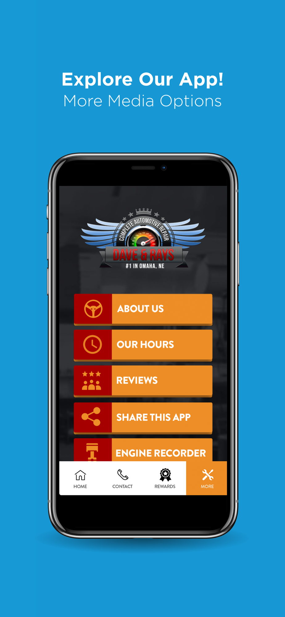 Our app gives app users access to special app only coupons and loyalty rewards. Our app also allows users to call, text, email, send images, send sound recordings, scheduled appointments, and get directions to our shop all at the click of a button. Best of all the Dave & Ray's Complete Automotive Repair app helps keep our customers cars running strong by reminding them when it is time to come in for routine maintenance. Download our app today to take advantage of savings and convenience only offered by Dave & Ray's Complete Automotive Repair. Don't forget to share the app with your friends so they can save time and money also!