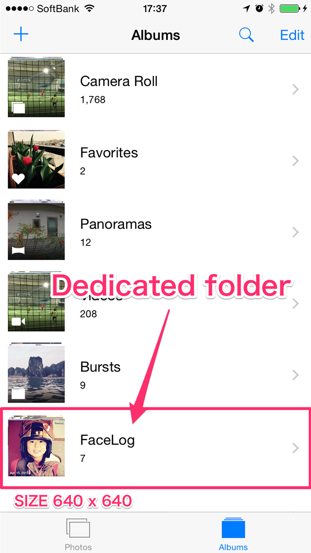 Since date is distributed to FaceLog dedicated album folder entered automatically, you can enjoy a change of face by simply flick.