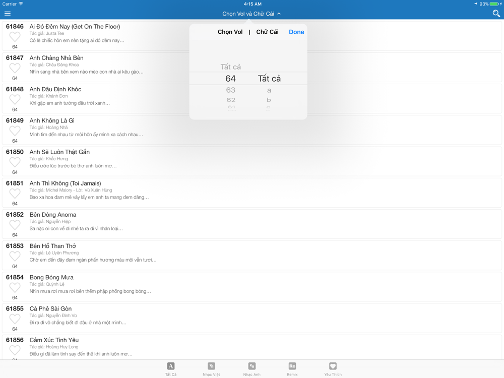 » Hiển thị danh sách bài hát theo bảng chữ cái a, b, c ...
