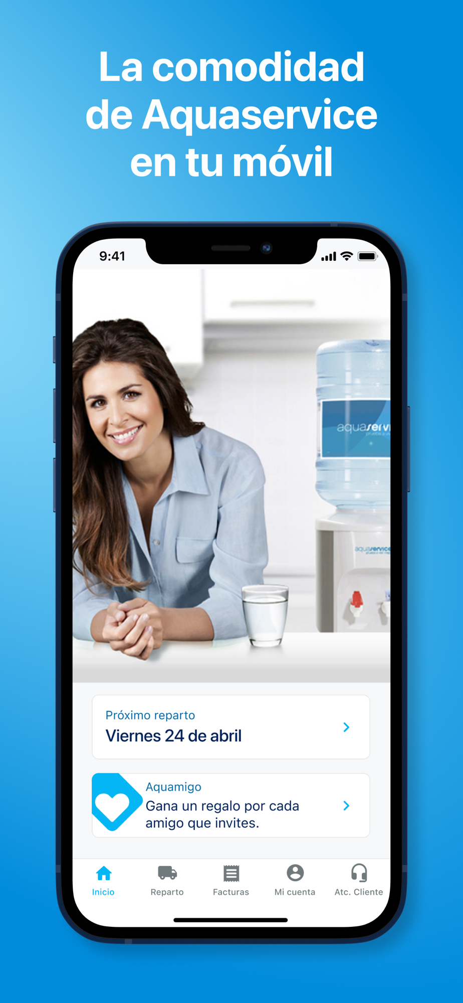 Aquaservice es la empresa líder de reparto de agua mineral natural y bebida refrescante a domicilio, con dispensador, en España. Fieles a la filosofía de ofrecer un servicio cómodo, hemos actualizado nuestra aplicación gratuita para permitirte que gestiones todo tu servicio de agua y de café desde el móvil de una manera más funcional y atractiva.