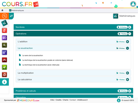 Classées par matières/thématiques/notions, le menu de gauche te permettra d’accéder rapidement et n’importe où à la leçon de ton choix.