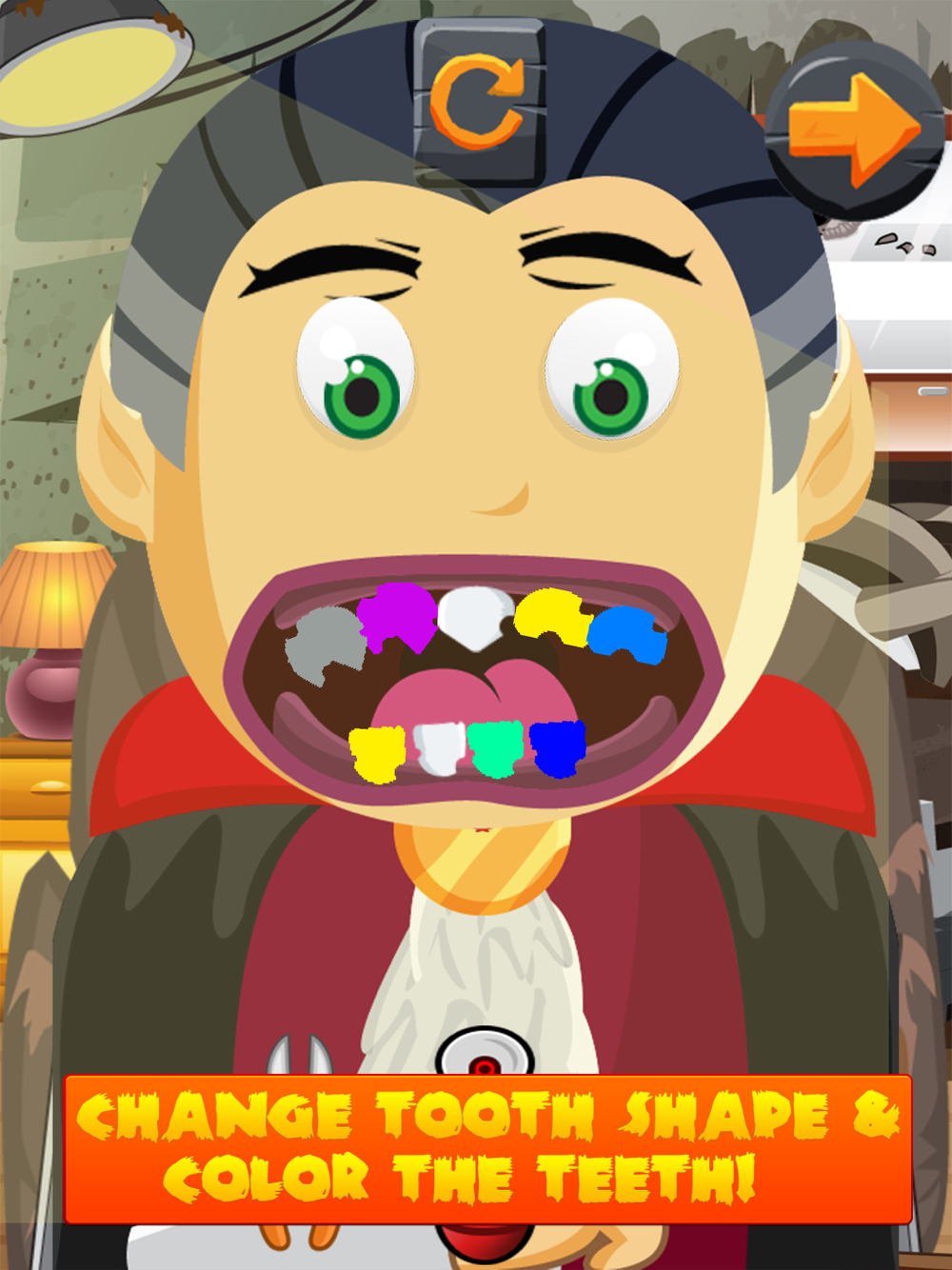 Choose from 4 monsters, Frankenstein, Glove Man, Mask Man and Dracula, all of them have terrible teeth and need you to get them back to being nice and shiny!