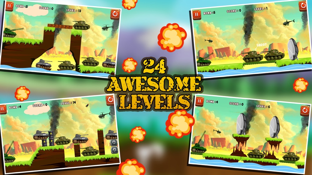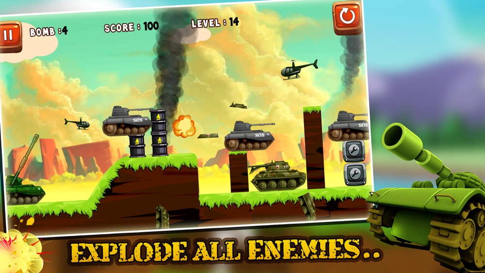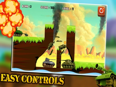 Tank Rivals is physics based shooting game. Your duty in this battle is to bomb enemy tanks. Set the angle and power of the grenade launcher and bomb when you are ready. There are some tanks belong to your own army, avoid bombing them.