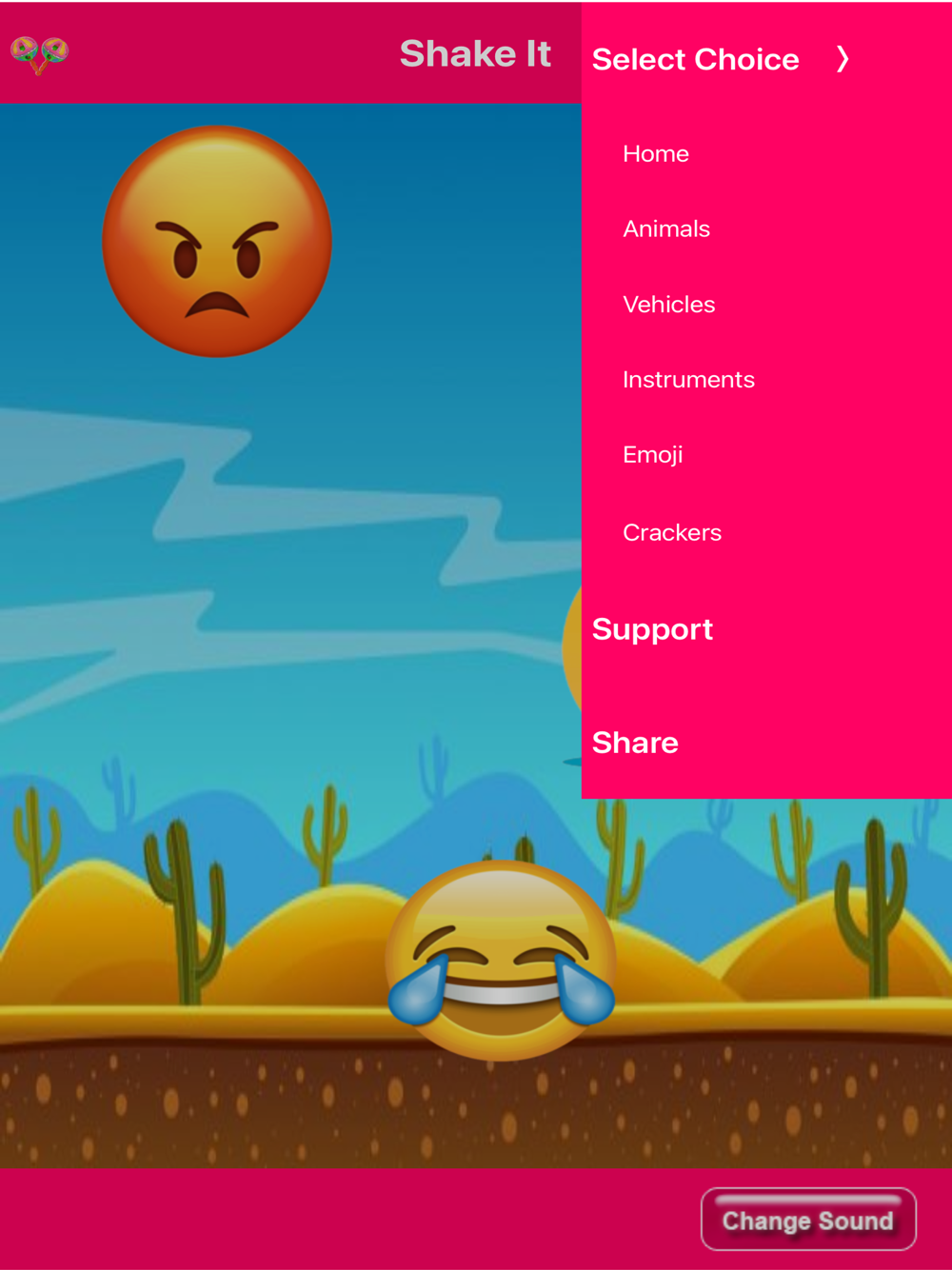Each object in rattle animates with sound effect when tapped.