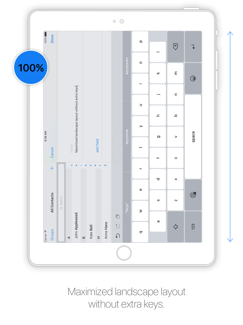 - Swipe to place thumb keyboard left/right (iPhone 6/iPhone 6 Plus)