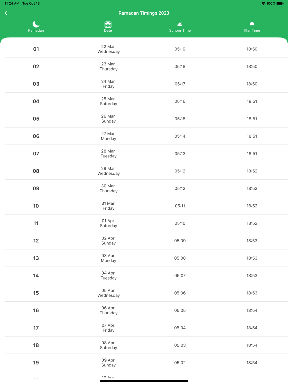 - Provide monthly prayer times for the current month and also can see the upcoming month's prayer times.
