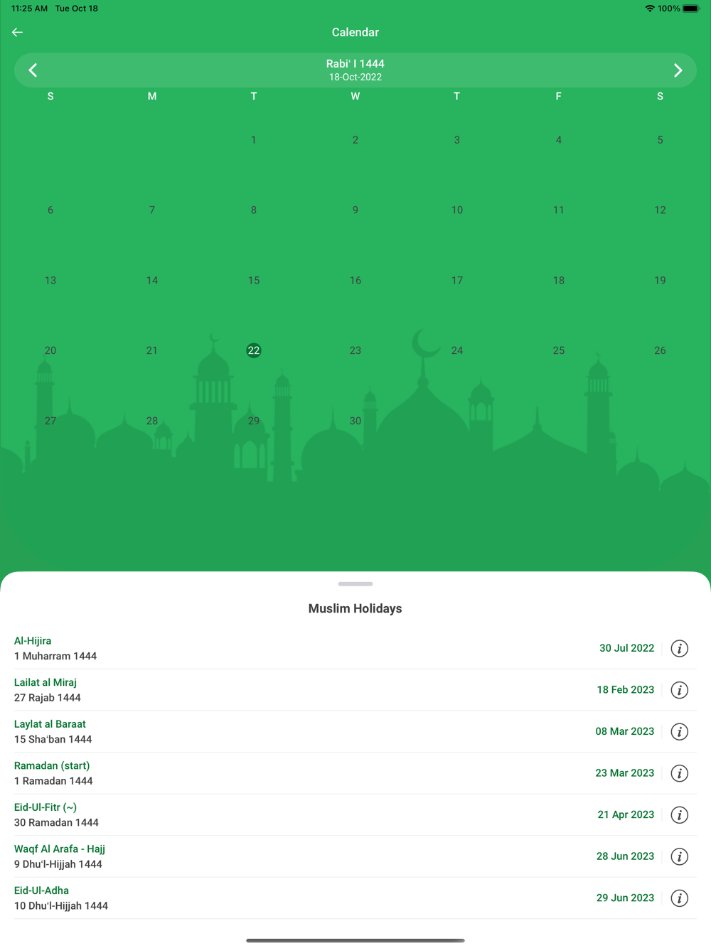 - Hijri Date (Helpful for non-arab countries to follow month of Ramadhan)
