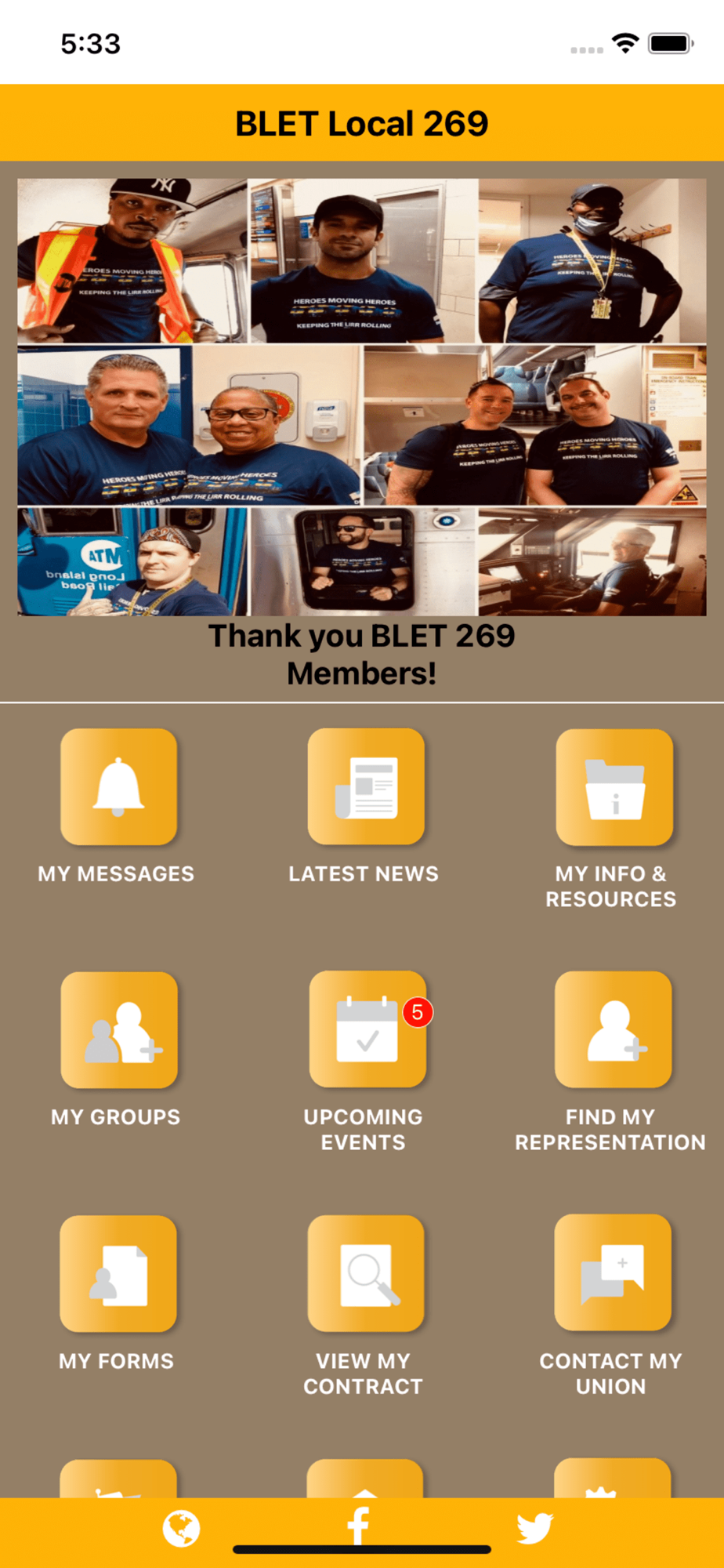 BLET 269 is the official mobile application of the Brotherhood of Locomotive Engineers and Trainmen,Division 269. It provides BLET Division 269 members with a tool to connect with their union and stay on top of major events, learn about their rights in the workplace, download their contracts, and more.