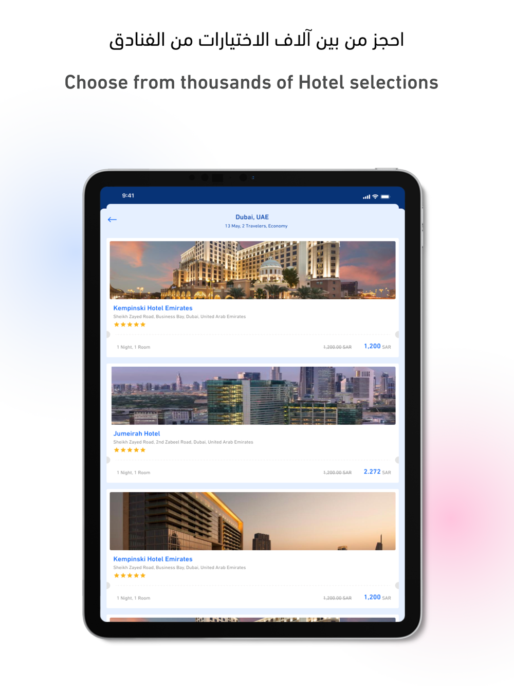 FlyAkeed is the only app that enables you to browse fully-booked flights and waitlist to issue your ticket once your seat becomes available again. In addition, you can browse and book available flights on all major international airlines. You can save your passenger details to save you time on your next booking, and you can easily contact our customer service AkeedCare via chat to inquire, book, or edit your booking. Plus, you can browse hotel deals to make FlyAkeed a one-stop for all your travel needs.