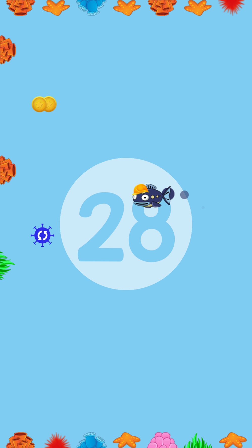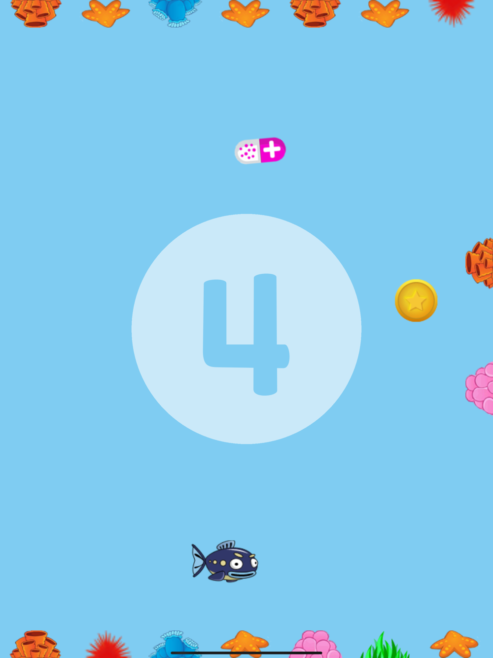 Tap to make the fish swim and avoid touching the spikes. Catch the special pills for bonus items!
