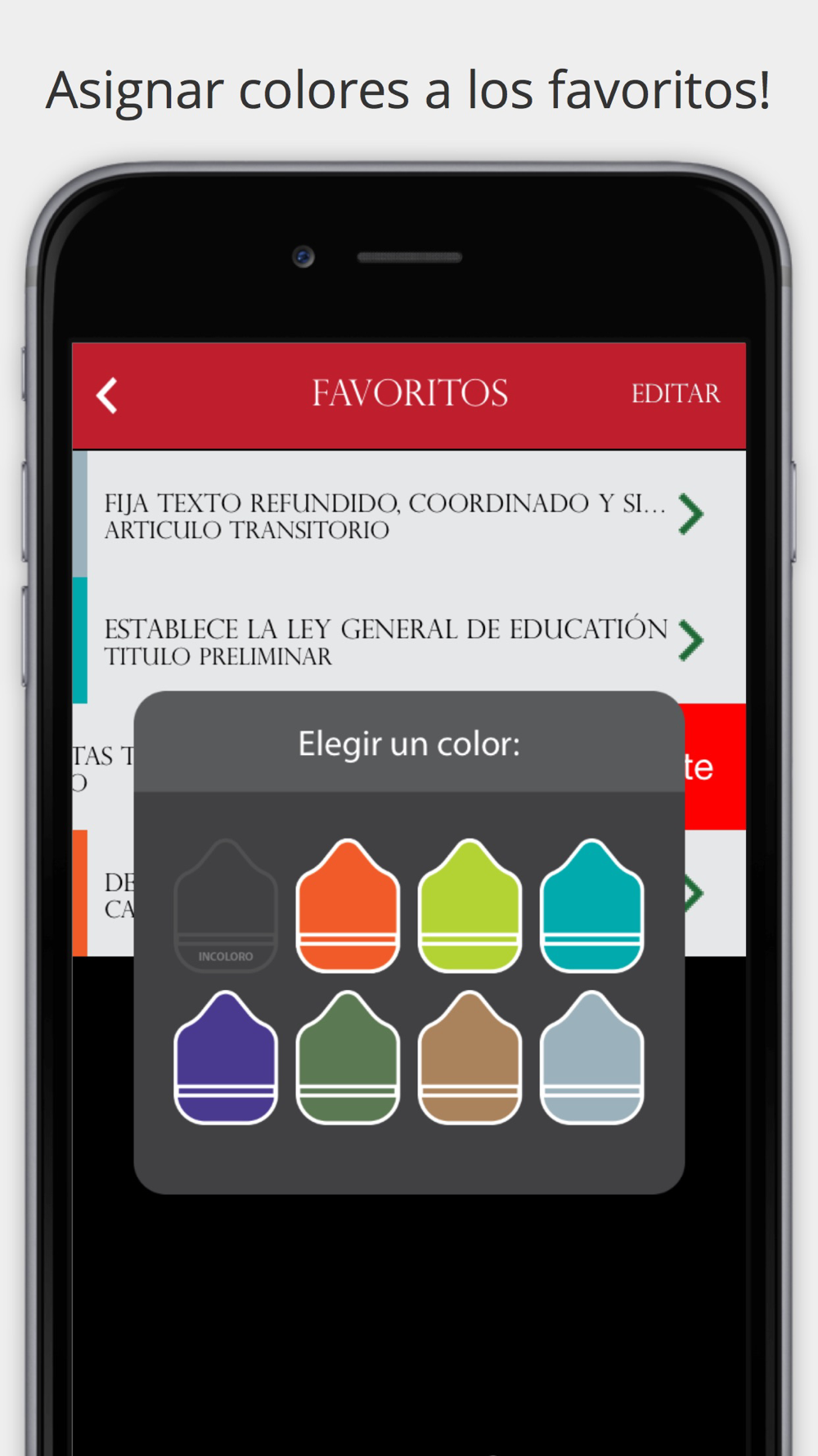 - Guarda cualquier ley cronológicamente en sus favoritos.