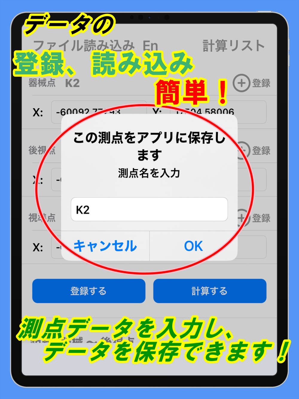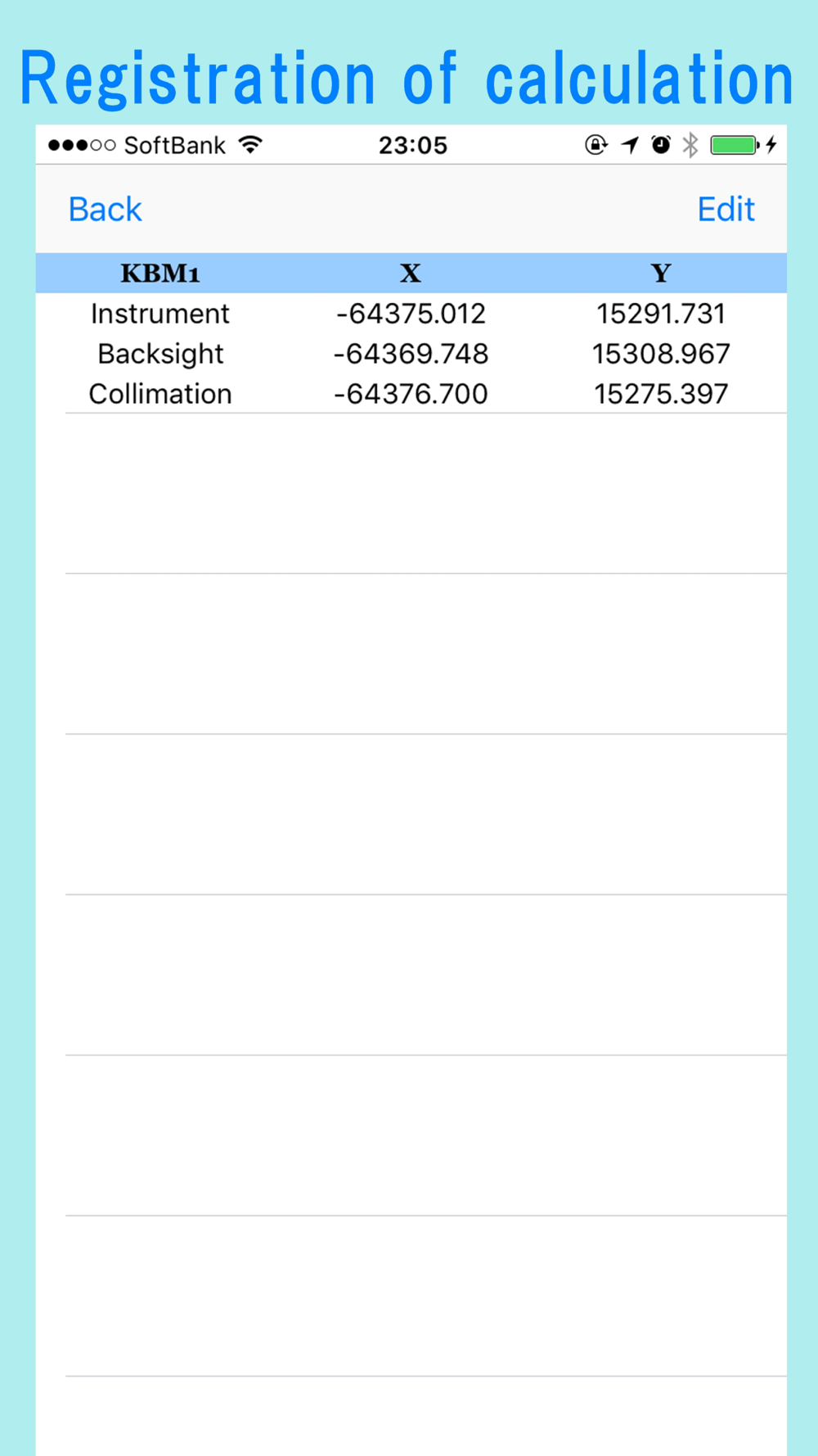 By inputting the XY coordinates of the instrument and backsight points, then inputting unspecified XY coordinates, the contained angle and distance will be calculated.