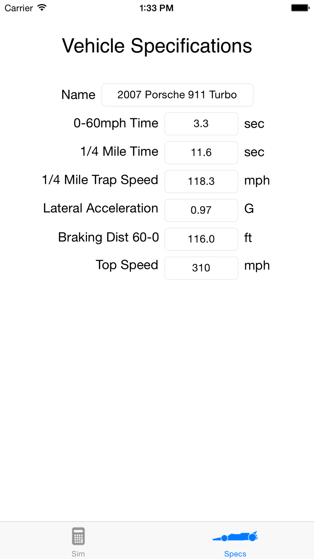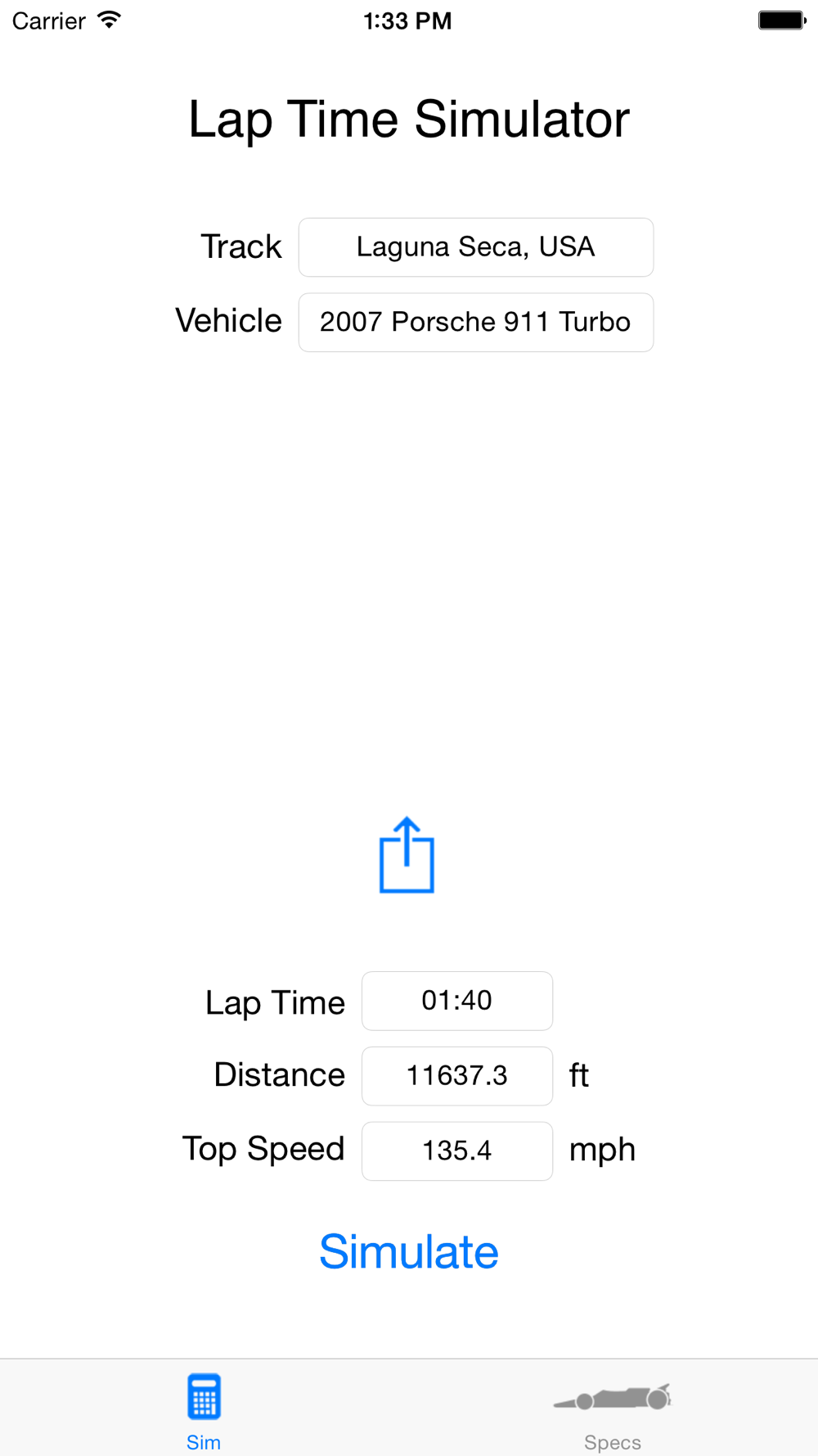 LapTime Simulator gives you insights into any vehicle's track performance characteristics. Share your lap times with friends and see just who's ride comes out on top!