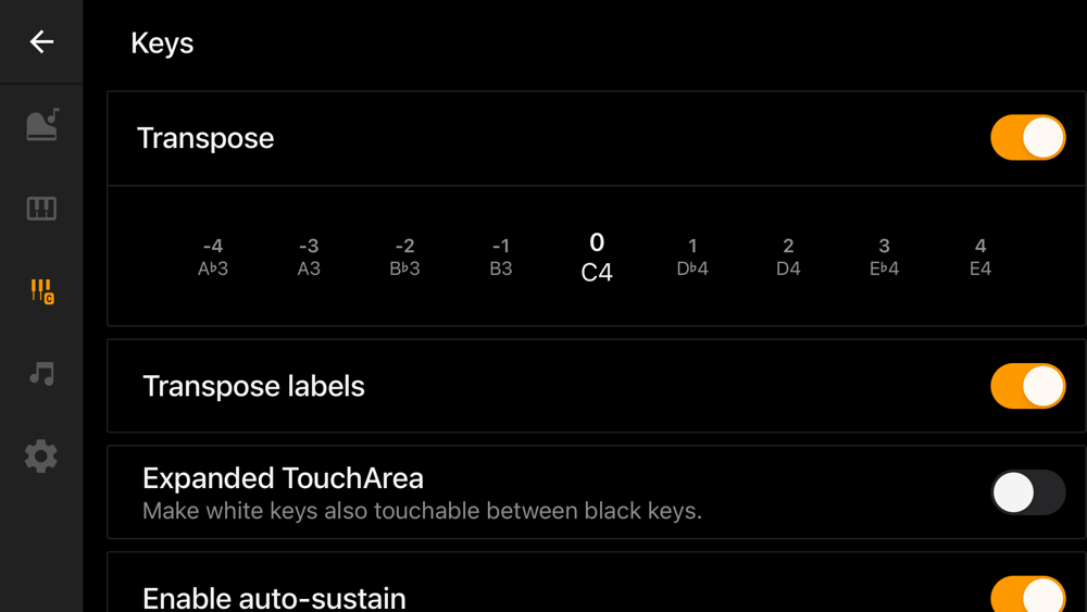 - Record, play and export to MIDI, AAC, MP3 or WAV