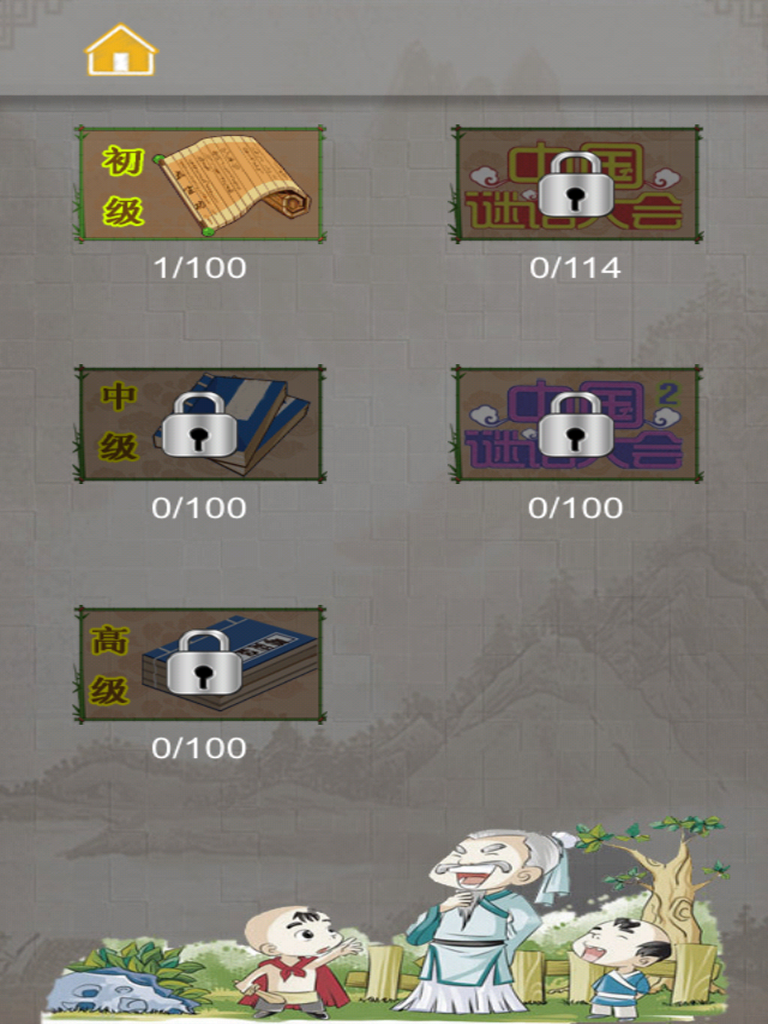 2. 难度由浅及深,有初级,中级,高级,和中国谜语大会1,中国谜语大会2。