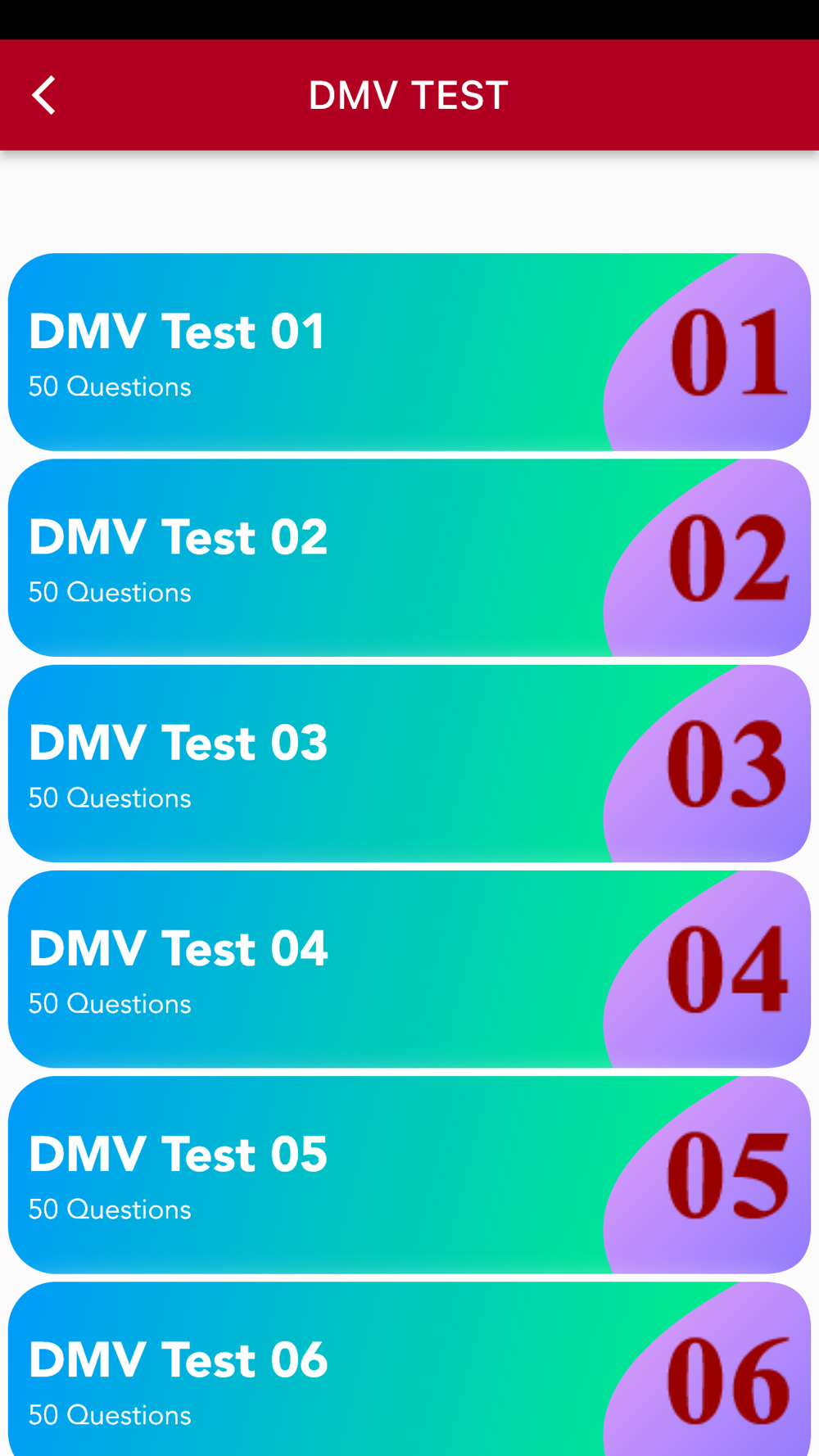 Virginia Driving test has over 1000+ Questions.There are 28 Categories from which you can select a Category and practice the test There are 10 set of DMV questions each having 50 Questions. By practicing this test you can PASS the WRITTEN TEST in FIRST ATTEMPT.
