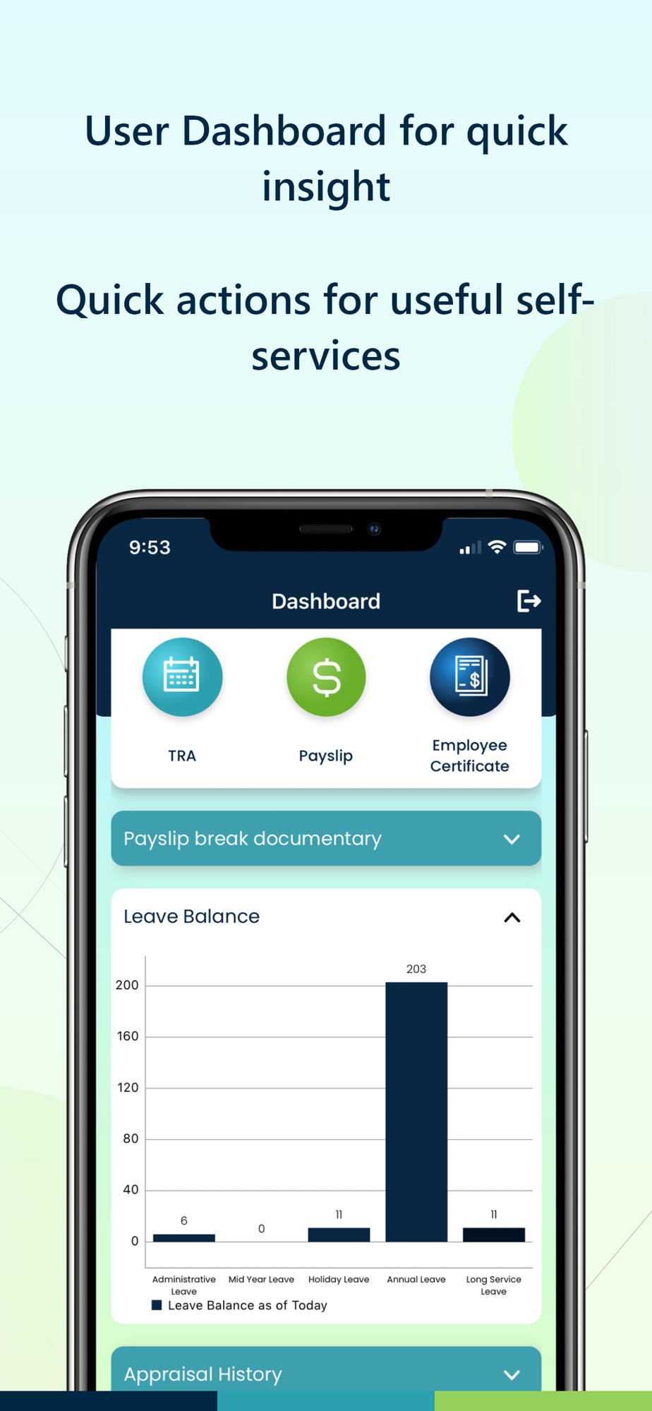 Allows administrative tasks like applying for various leaves and request for employee certificate.