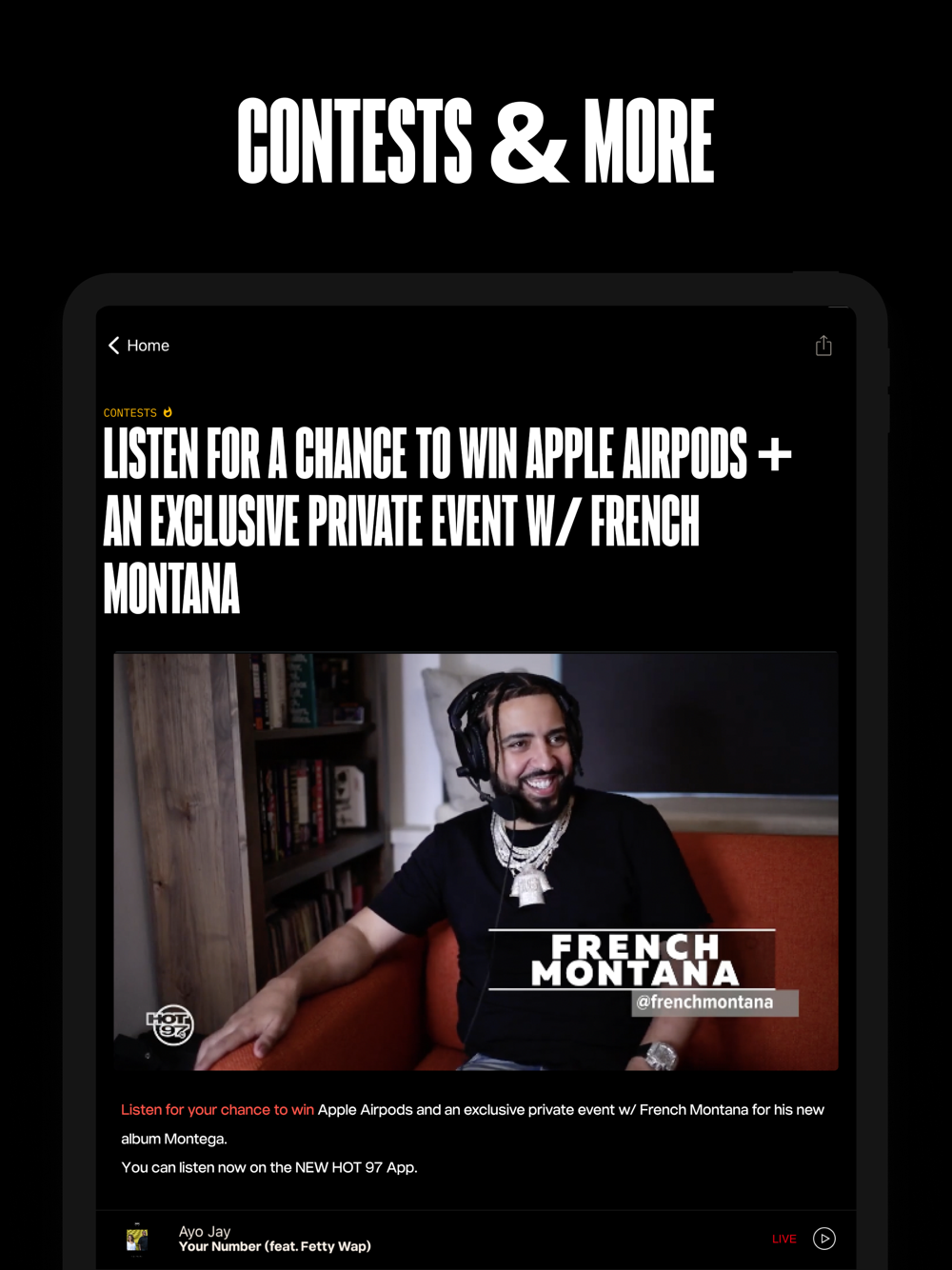 Live chat with your favorite HOT 97 Personalities + access to exclusive live-video only available on the app!