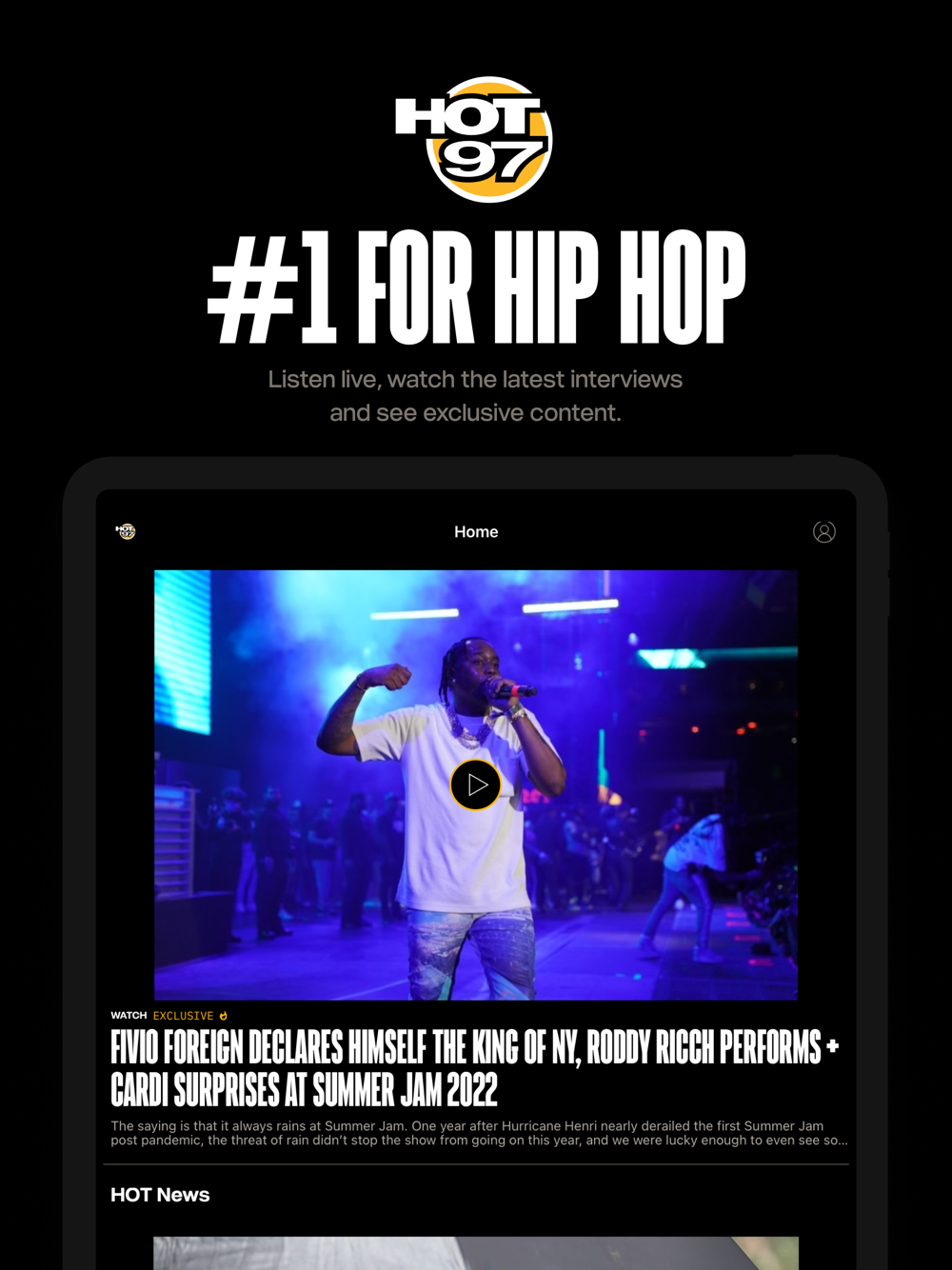 The HOT 97 app will keep you up-to-date on the latest in hip hop and culture, with breaking news and exclusive content and videos from Ebro, Laura Stylez, & Rosenberg, Funk Flex, Nessa and many more!