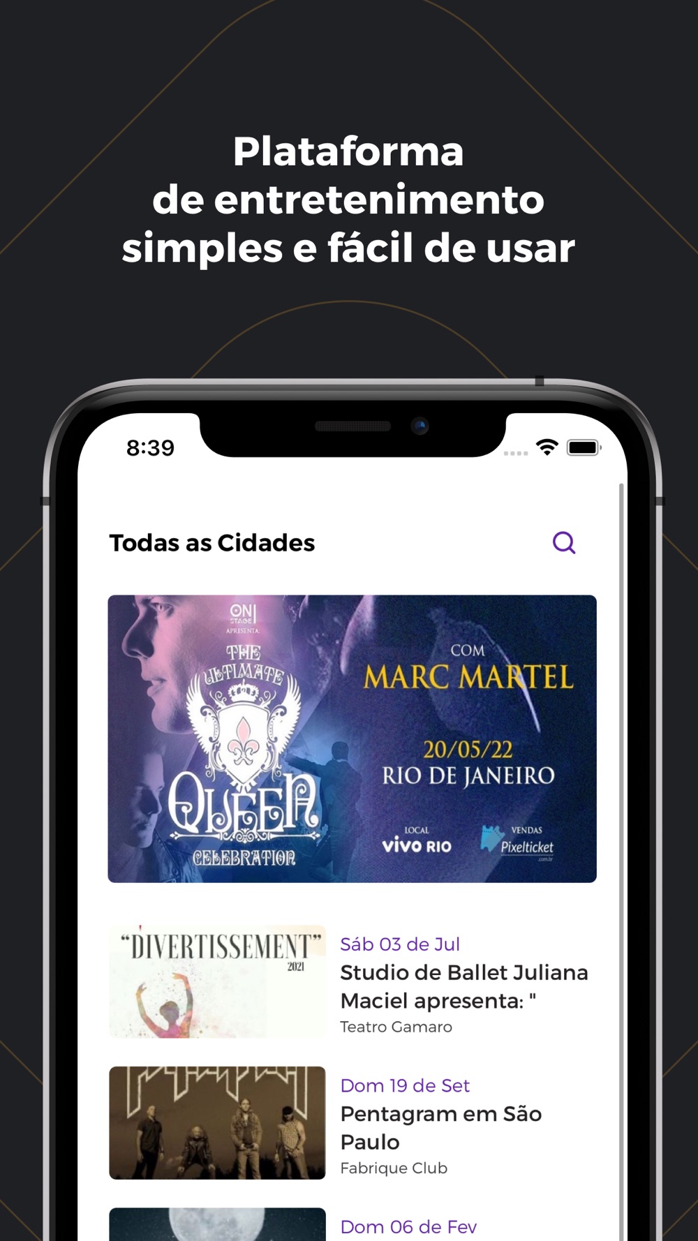 • Seguir produtoras favoritas e receber notificações sobre: novos eventos, promoções…