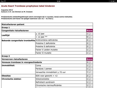 Tevens formules voor o.a. het toedienen van bloedtransfusie en het berekenen van de indicatie voor trombose-profylaxe.